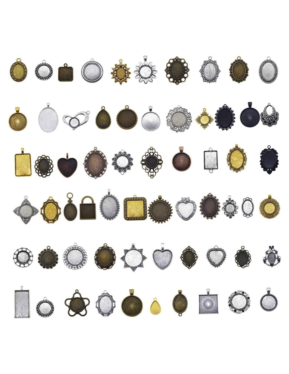 - Estas son buenas bandejas y vacíos de colgantes, de buena calidad y variedad, variedad de diseños. Son buenos para usar con cabujones y excelentes para manualidades de resina.