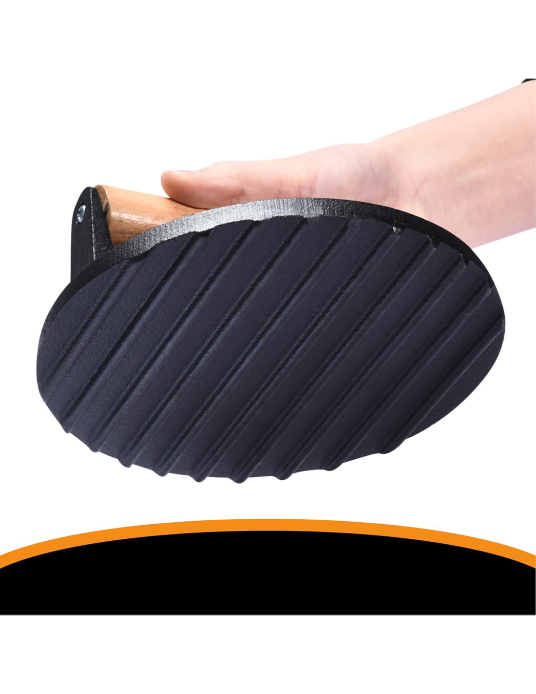 - Si buscas un sellado perfecto en tu comida, la prensa de hierro fundido es una gran opción. Esta herramienta práctica te permite presionar uniformemente tu comida, asegurando que obtengas un buen sellado crujiente. Además, está hecha de hierro fundido, por lo que está diseñada para durar.