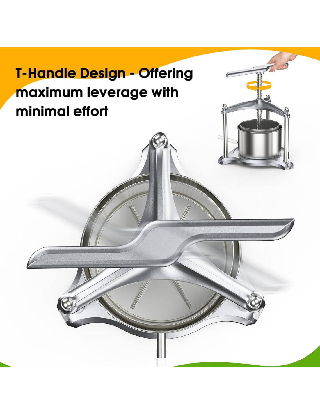 - Prensa Multifuncional: Extrae fácilmente jugo de frutas, verduras, hace leche de nuez, prensa queso o crea tinturas herbales. Perfecto para hacer vino, comprimir miel y más con esta versátil herramienta de cocina