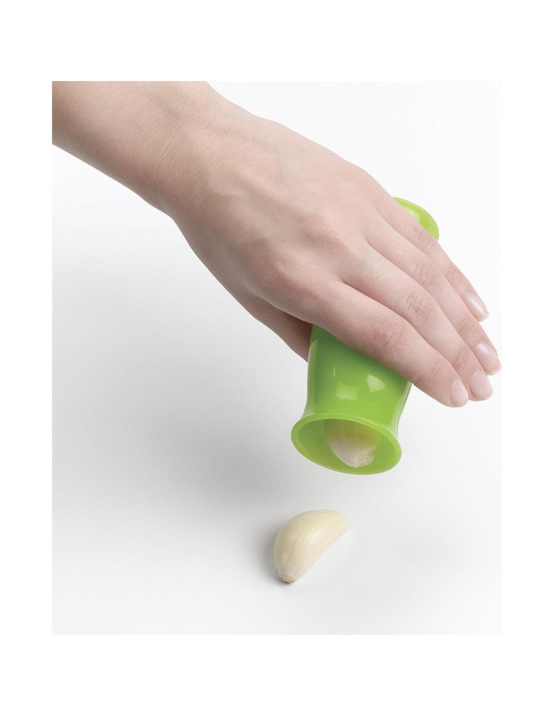 Pela ajo rápidamente simplemente rodando. Inserta los dientes de ajo en el pelador de ajo de silicona verde y rueda hacia adelante y hacia atrás sobre la mesa o la encimera mientras presionas hacia abajo. Los dientes salen pelados, mientras que la cáscara se queda adentro. Tus manos permanecen limpias y no olerán a ajo. Un rápido enjuague elimina la cáscara. Estuche de almacenamiento incluido.
