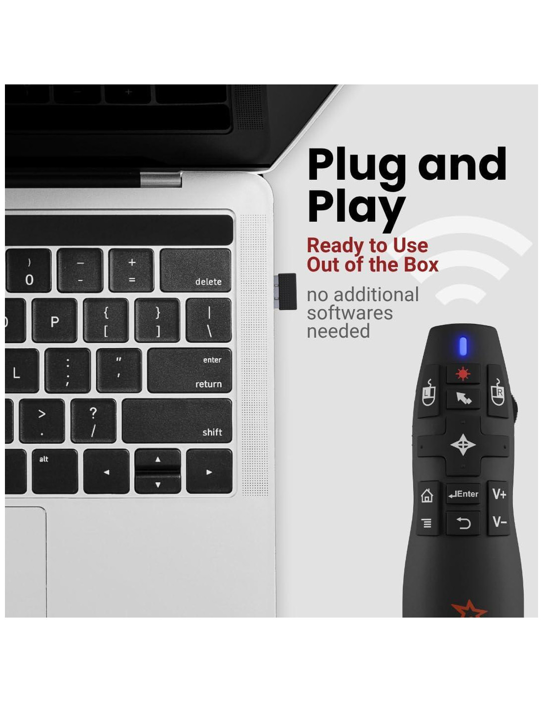 - Compatibilidad Sin Interrupciones: Funciona con PowerPoint, Keynote, Google Slides en Mac, Windows, Linux. Este clicador de presentación es plug-and-play: no se necesita configuración, ideal para profesionales de gadgets de oficina.