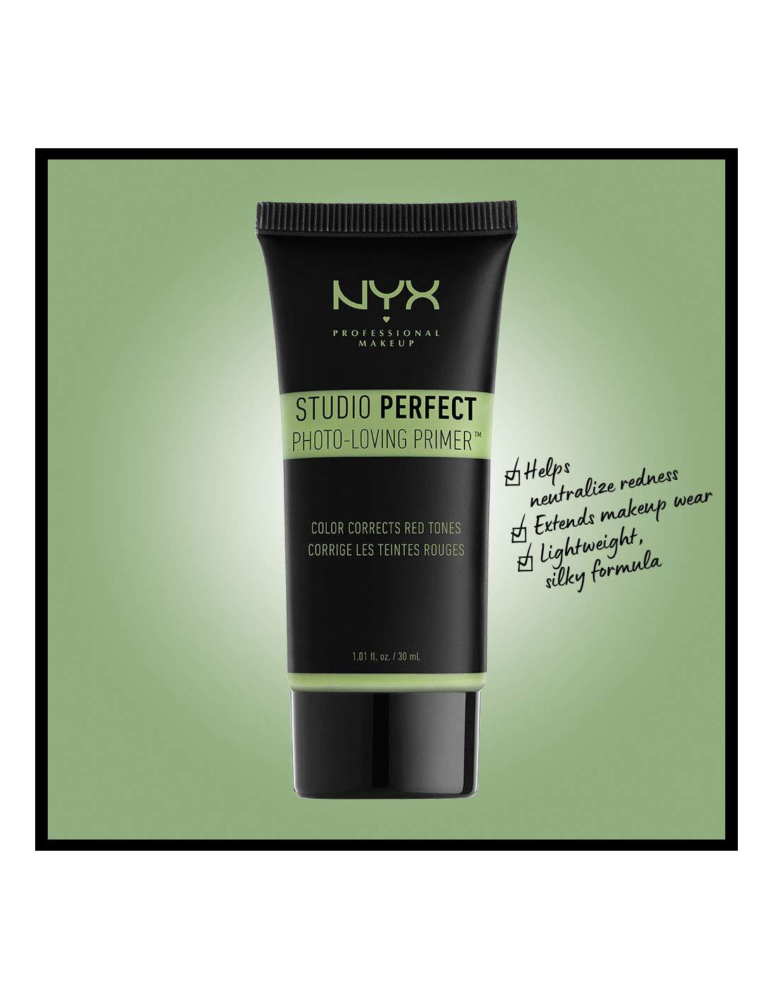 - Primer Studio Perfect: Corrige el color y prepara con nuestro Primer Studio Perfect Verde; Neutraliza el enrojecimiento y la irritación causados por rosácea, acné y capilares rotos y prolonga la duración de tu base con este primer corrector de color