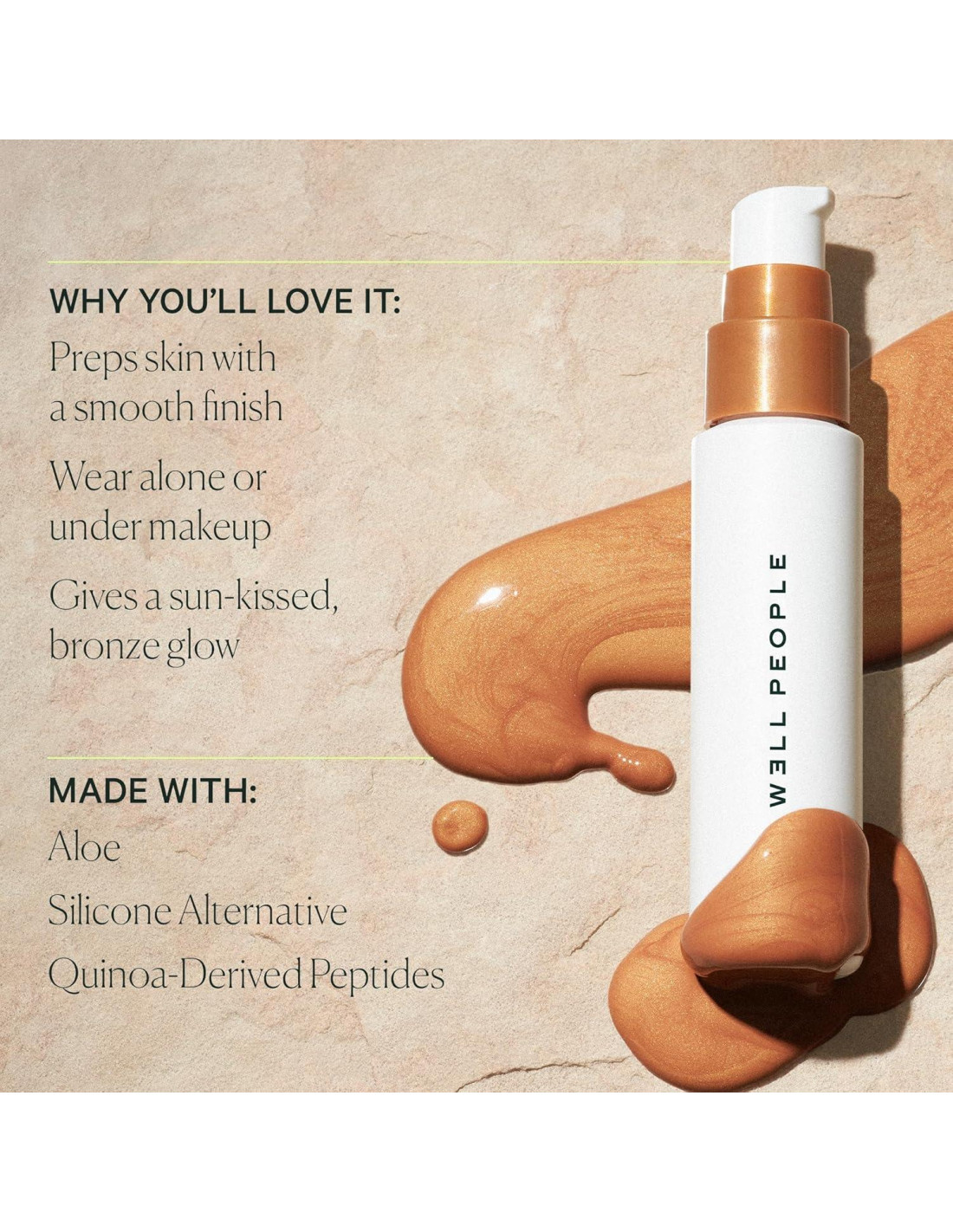 Logra un cutis saludable y radiante mientras suavizas tu piel. Este híbrido de suero y primer ligero cumple doble función para aumentar la luminosidad de tu piel mientras fija el maquillaje para un look duradero. La fórmula a base de plantas tiene una sensación no grasosa y está infusionada con aloe para ayudar a calmar la piel, aceite de semilla de brócoli para iluminar la piel y manteca de cacao para beneficios adicionales de acondicionamiento. Los productos de Well People son aptos para el embarazo.