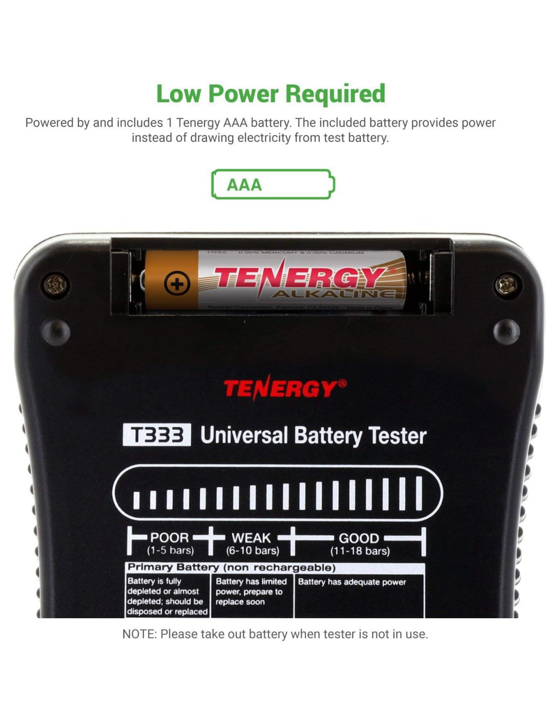 - Ahorra dinero y reduce desperdicios - Con el probador de salud de baterías de Tenergy, ya no adivinarás si una batería está en buenas condiciones. Maximiza el uso de tu batería probando baterías muertas y reduce el desperdicio innecesario. Incluye un año de soporte de garantía.