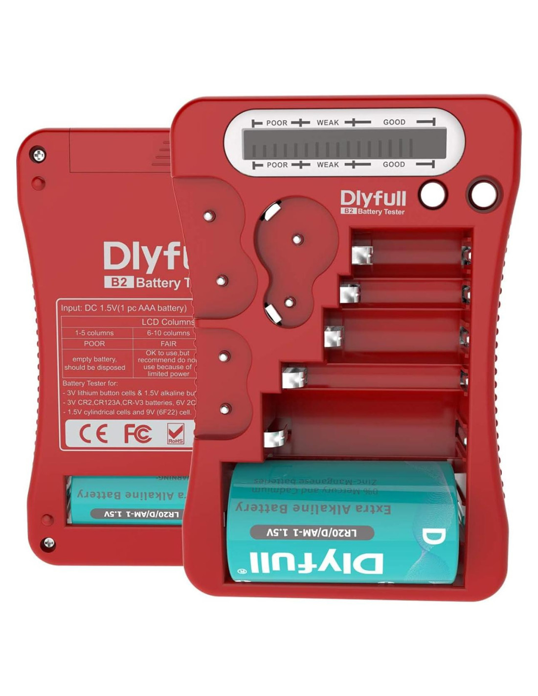 - LO QUE OBTIENES: Probador de Baterías Universal Dlyfull (1x batería AAA incluida), guía de bienvenida y nuestra garantía de 18 meses sin preocupaciones y servicio al cliente amigable. Un asistente que te ayuda a ahorrar dinero y prolongar la vida útil de todas tus baterías