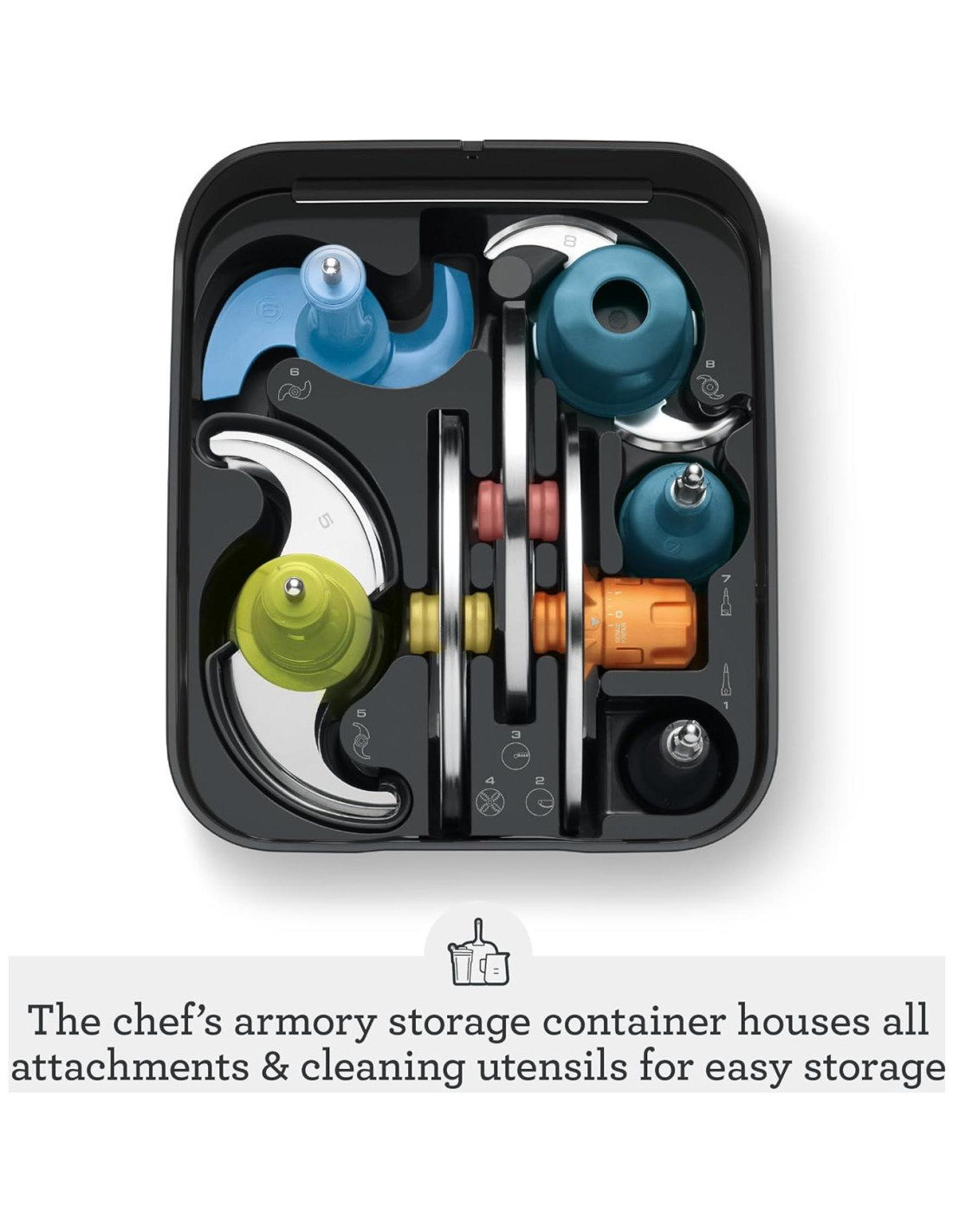 - CONTENEDOR DE ALMACENAMIENTO: Procesador de alimentos compacto diseñado para un uso práctico en cocinas grandes y pequeñas; Maximiza tu espacio en la encimera; El contenedor alberga todos los accesorios y utensilios de limpieza de manera conveniente cuando no está en uso