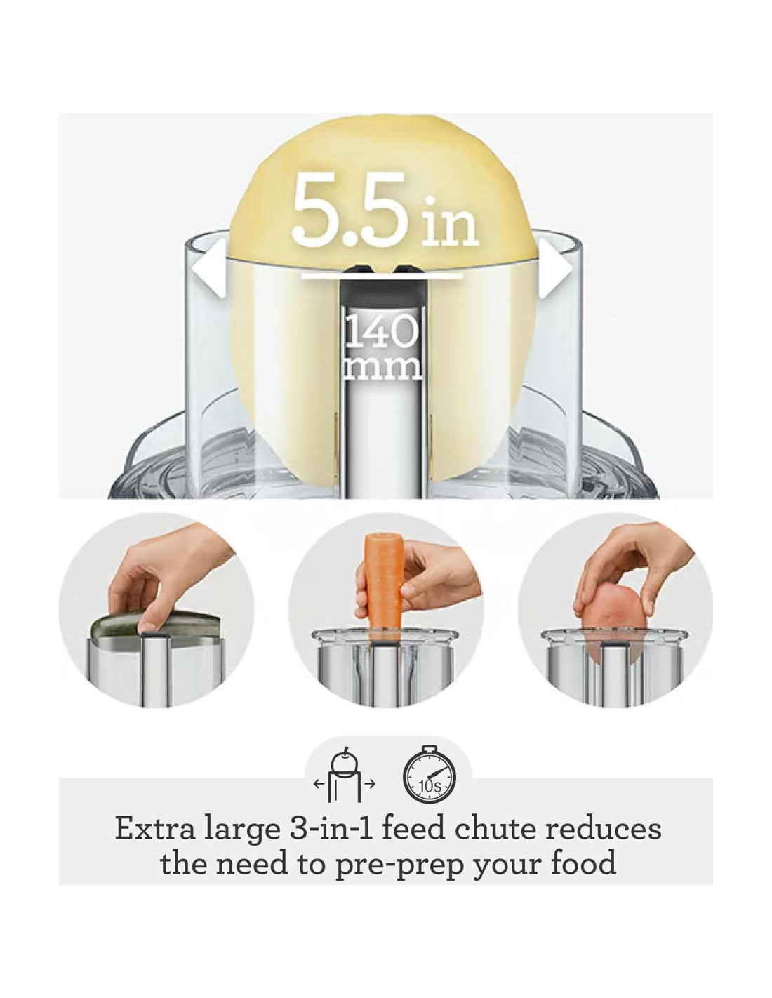 - TOLVA DE ALIMENTACIÓN EXTRA GRANDE DE 5.5 PULGADAS (14 CM): El procesador de alimentos simplifica la preparación de comidas; Tolva de alimentación 3 en 1 diseñada para acomodar diferentes formas y tamaños con resultados precisos; Las opciones de tolva varían de 1.7 in (4.3 cm) a 5.5 in (14 cm), reduciendo la necesidad de preparar tus alimentos previamente