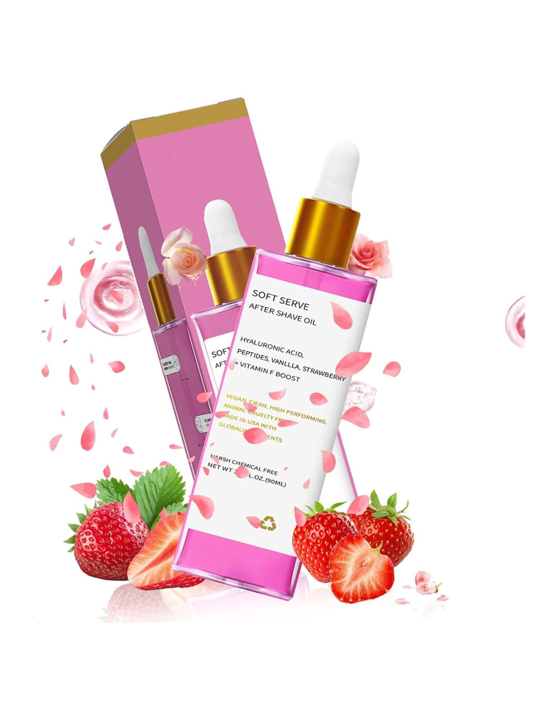 Aceite After Shave de Fresa y Vainilla para Piel Suave, Aceite After Shave de Servicio Suave con Ácido Hialurónico y Péptidos para Calmar la Irritación del Afeitado, Prevenir Vellos Encarnados y Sequedad (90ml, 1 PCS)