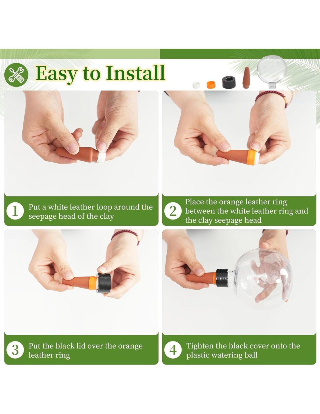 - [Fácil de usar] : El irrigador automático de plantas es simple en diseño y eficiente en uso. Simplemente llena de agua, inserta la estaca de riego del globo en tu mezcla para macetas y llena de agua, y el cono poroso distribuirá lentamente el agua a lo largo del día, asegurando un suministro constante y continuo de agua para tus plantas.