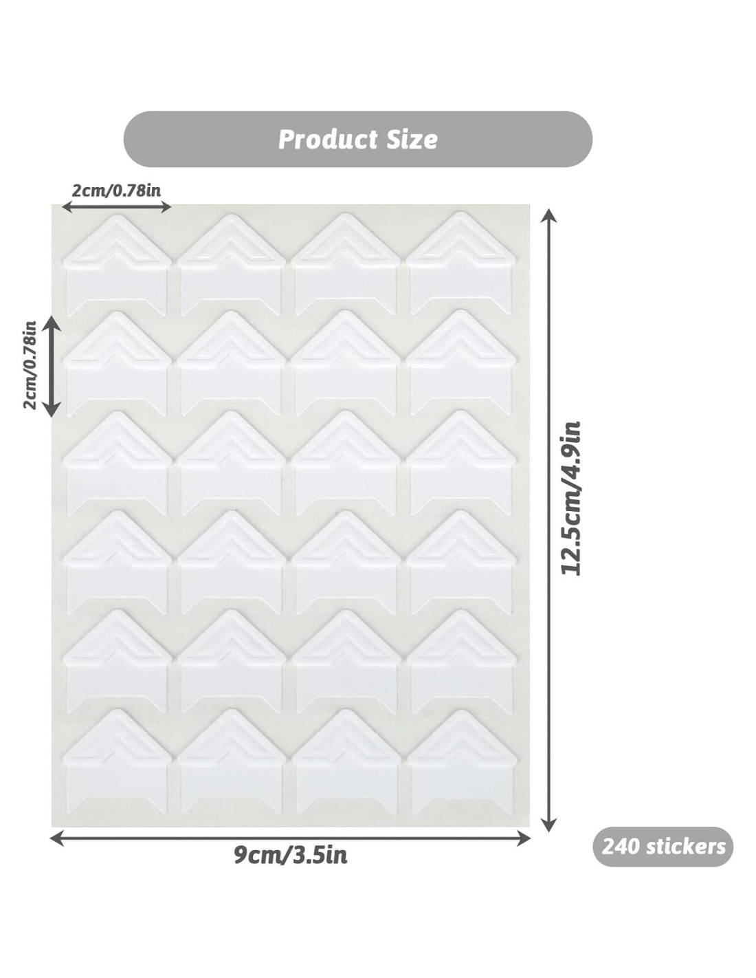 - [Paquete Incluido] : El paquete contiene 10 hojas de esquinas de fotos con 24 adhesivos por esquina, para un total de 240 piezas de esquinas adhesivas para fotos. Hay suficientes adhesivos de esquina para cubrir 60 fotos.
