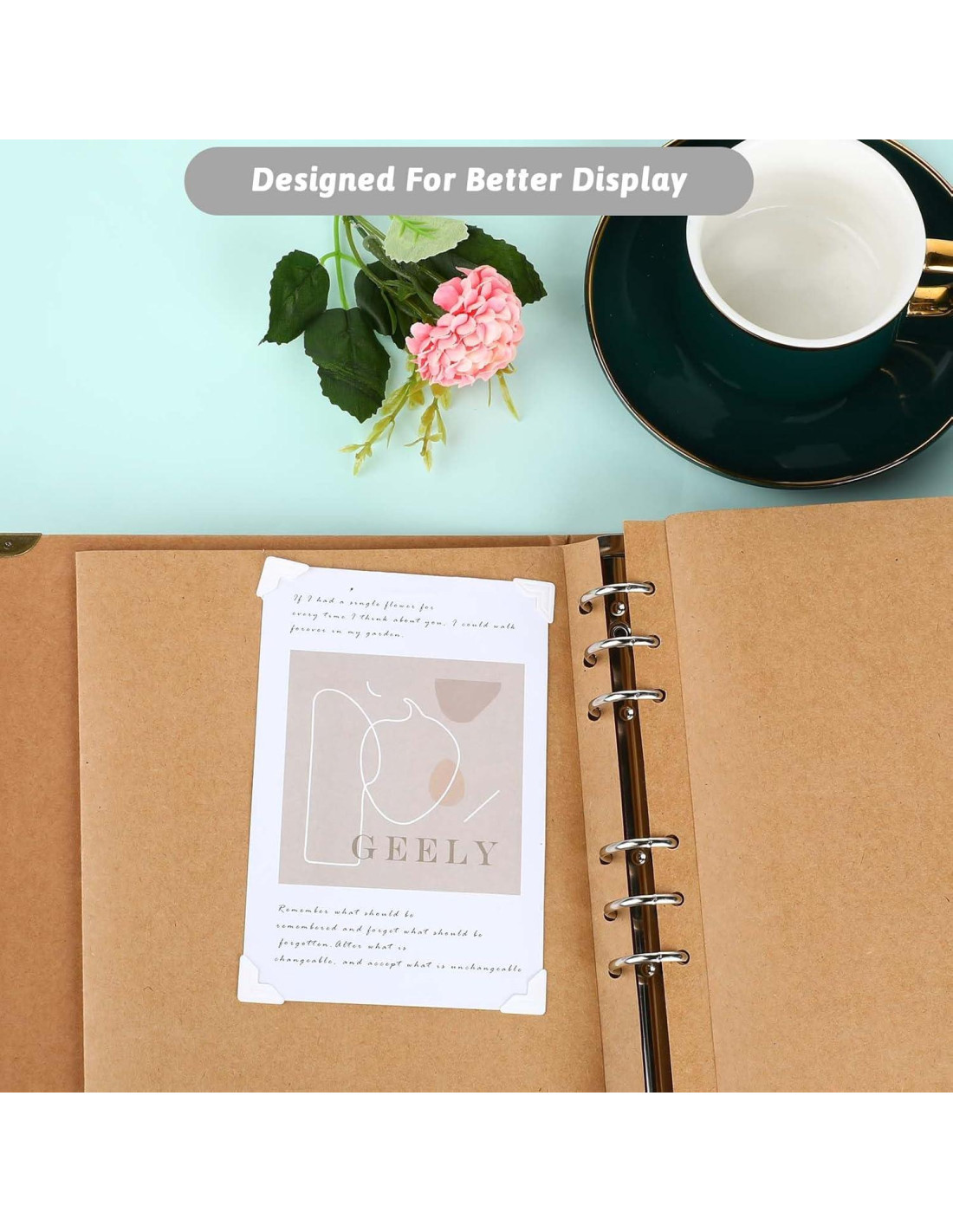 - [Fácil de Instalar] : Estas esquinas de fotos para álbumes son autoadhesivas. Simplemente despega el papel del adhesivo y pégalo directamente en la página del álbum. No se requiere pegamento adicional. Muy fácil de usar.
