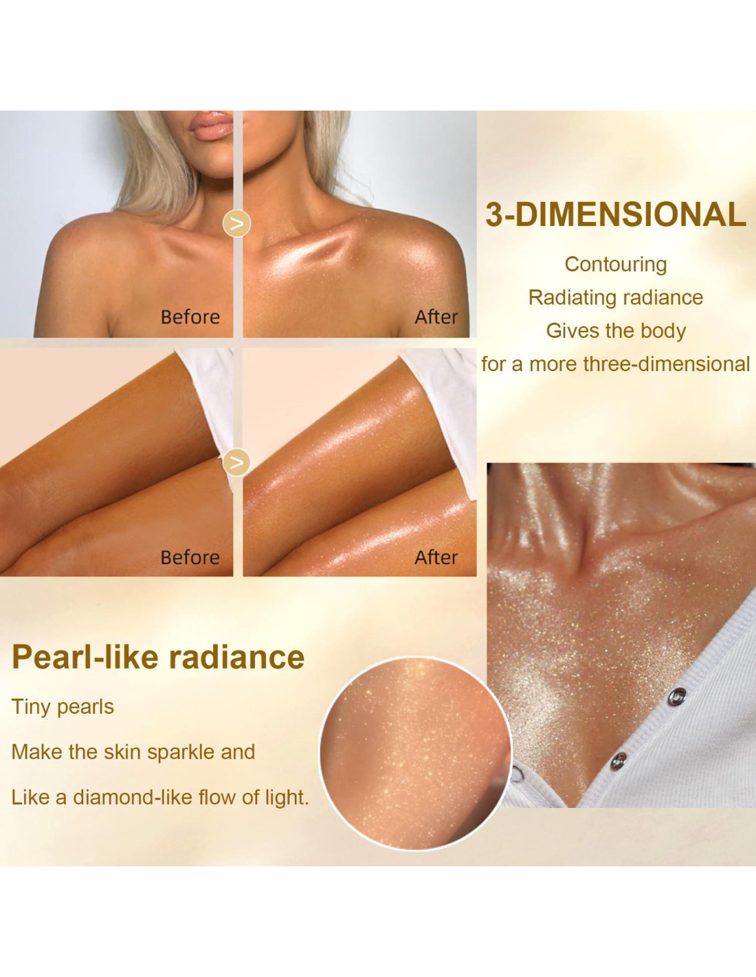 - [ACEITE BRILLANTE PARA EL CUERPO MEILURY] Infundido con mica rosa dorada, nuestro aceite corporal protector solar puede proteger la piel del daño UV, mientras le da a tu piel un brillo atractivo al sol. Se absorbe rápidamente - sin trazas grasosas.