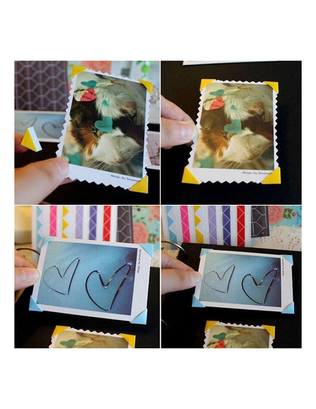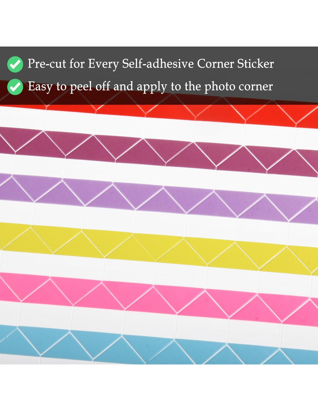 - FÁCIL DE DESPEGAR Y APLICAR - Estas esquinas de foto autoadhesivas están precortadas en piezas en cada hoja. Fáciles de despegar de la hoja y convenientes para aplicar en álbum de recortes, álbum, diario, decoración de diario o pared de fotos