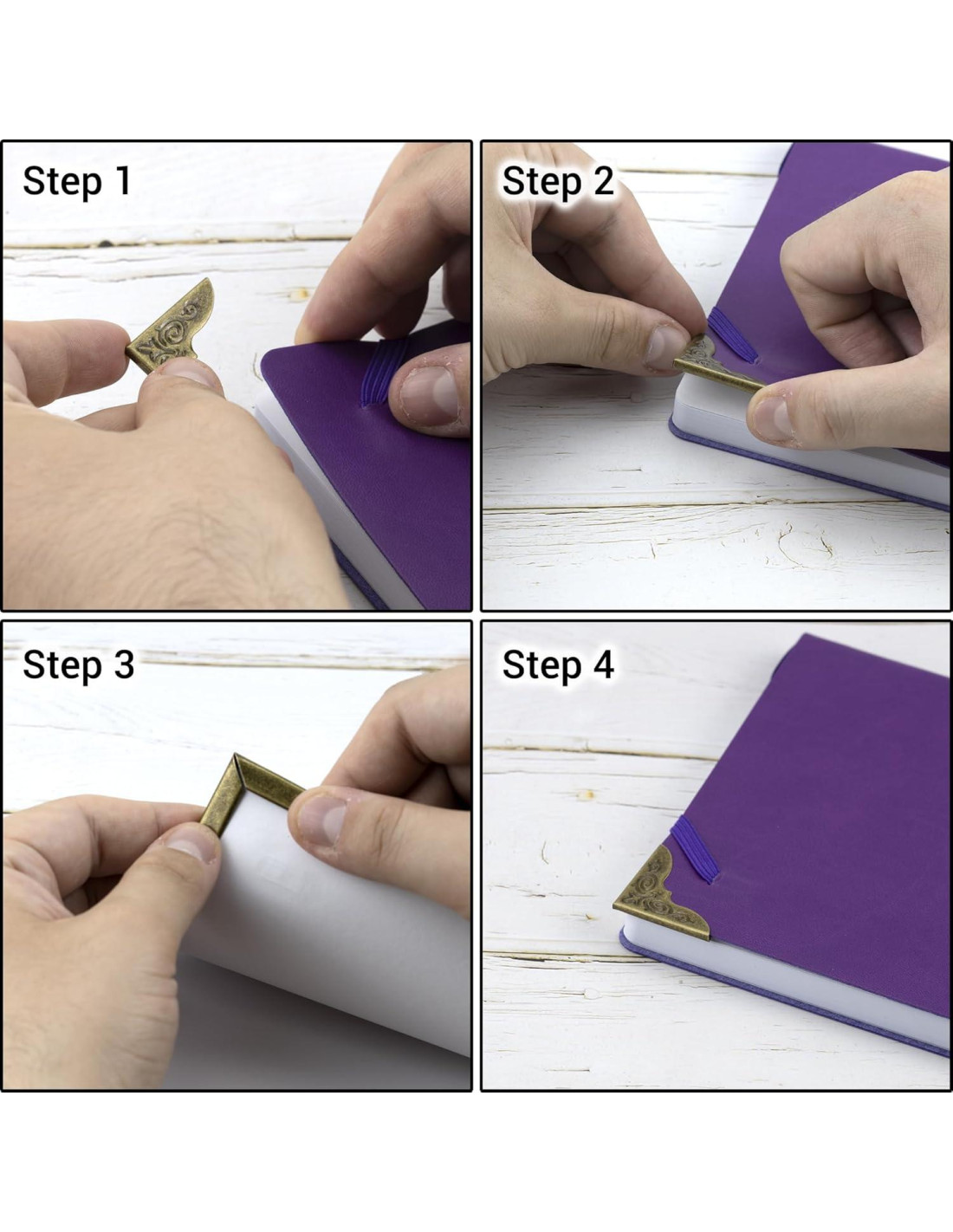 - Instalación sin esfuerzo: No se necesitan herramientas. Instalar estos protectores de esquina de libro de metal es rápido y fácil. Simplemente alinéalo con las esquinas de tus libros y aplica presión suavemente para una durabilidad instantánea y atractivo estético.