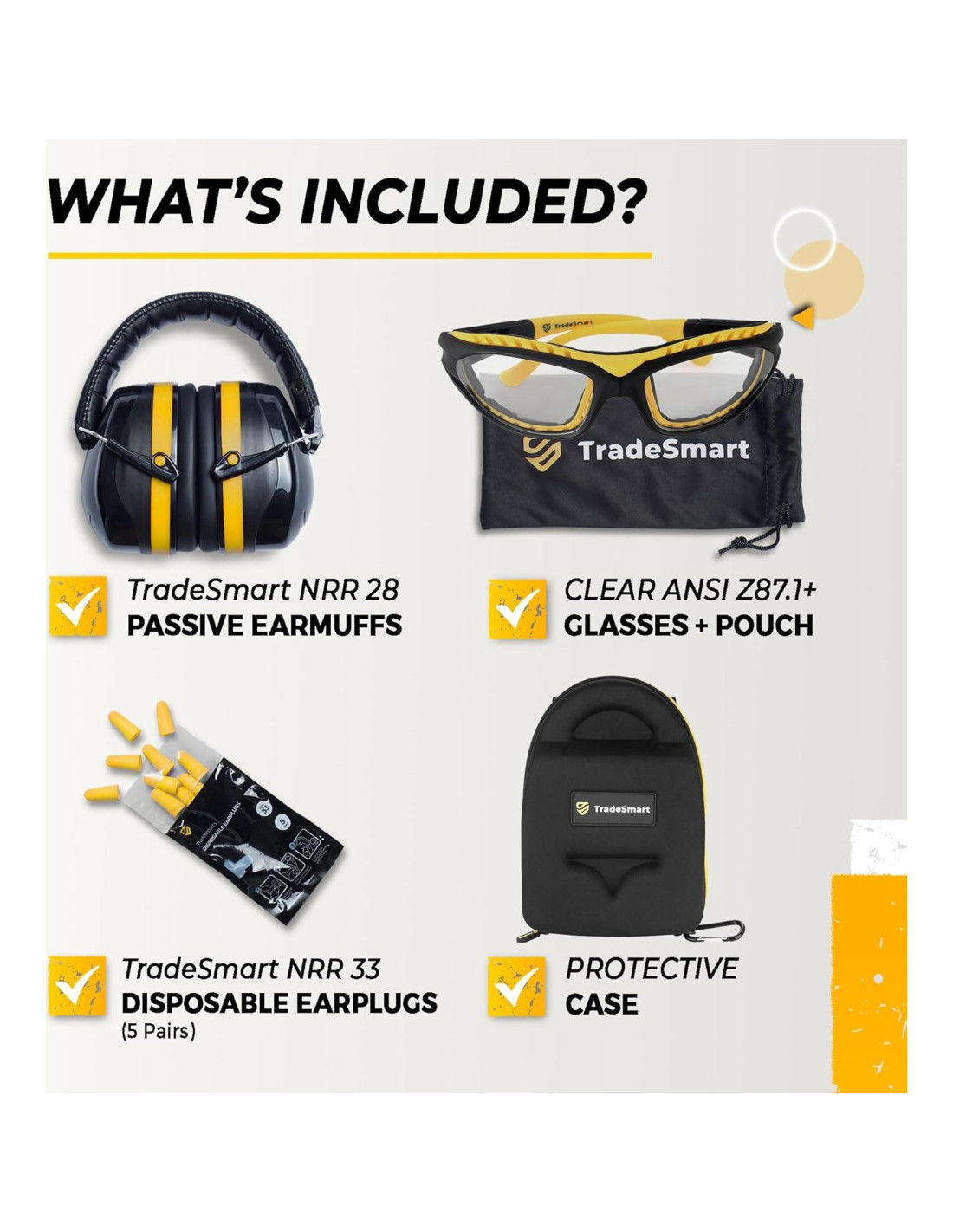 - AJUSTE CÓMODO PARA CUALQUIERA: La protección auditiva TradeSmart NRR 28 para tiro se ajusta a hombres y mujeres, adolescentes y adultos - gracias a su diseño ajustable de talla única. La banda suave y los cojines para los oídos en los auriculares insonorizados te brindan un mayor nivel de comodidad. Evita el dolor en las sienes con brazos planos en las gafas de seguridad sin empañamiento. Combinado, el equipo TradeSmart te permite disparar con confianza, sin dolor ni distracciones de ningún tipo.