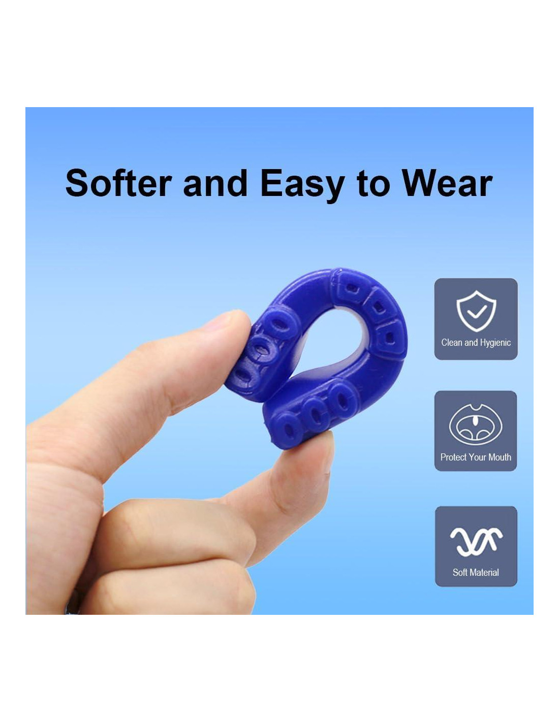 - Protección dental cómoda: Este protector bucal para frenos está hecho de material de silicona de alta calidad, suave y liso, inodoro, cómodo de usar, absorbiendo y dispersando efectivamente la fuerza de impacto para proteger dientes y encías.