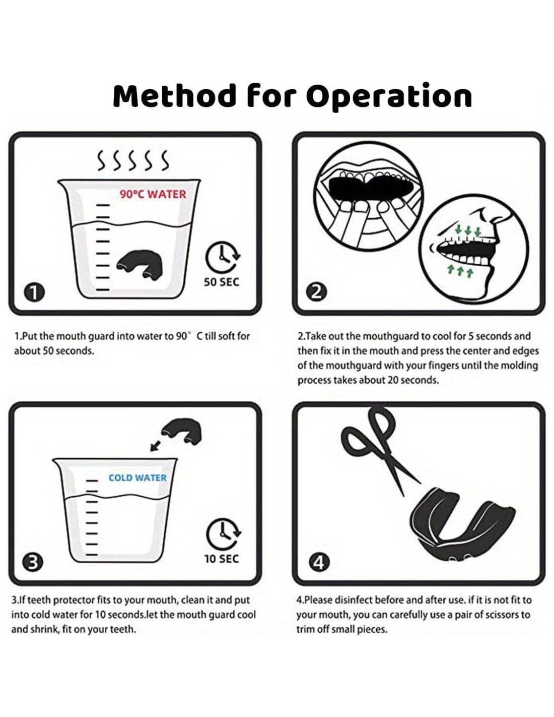 - Comodidad y Ajuste Personalizado: Nuestro protector bucal es fácil de ajustar. Se moldea específicamente a tus dientes y encías, proporcionando un ajuste personalizado que es cómodo para un uso prolongado.