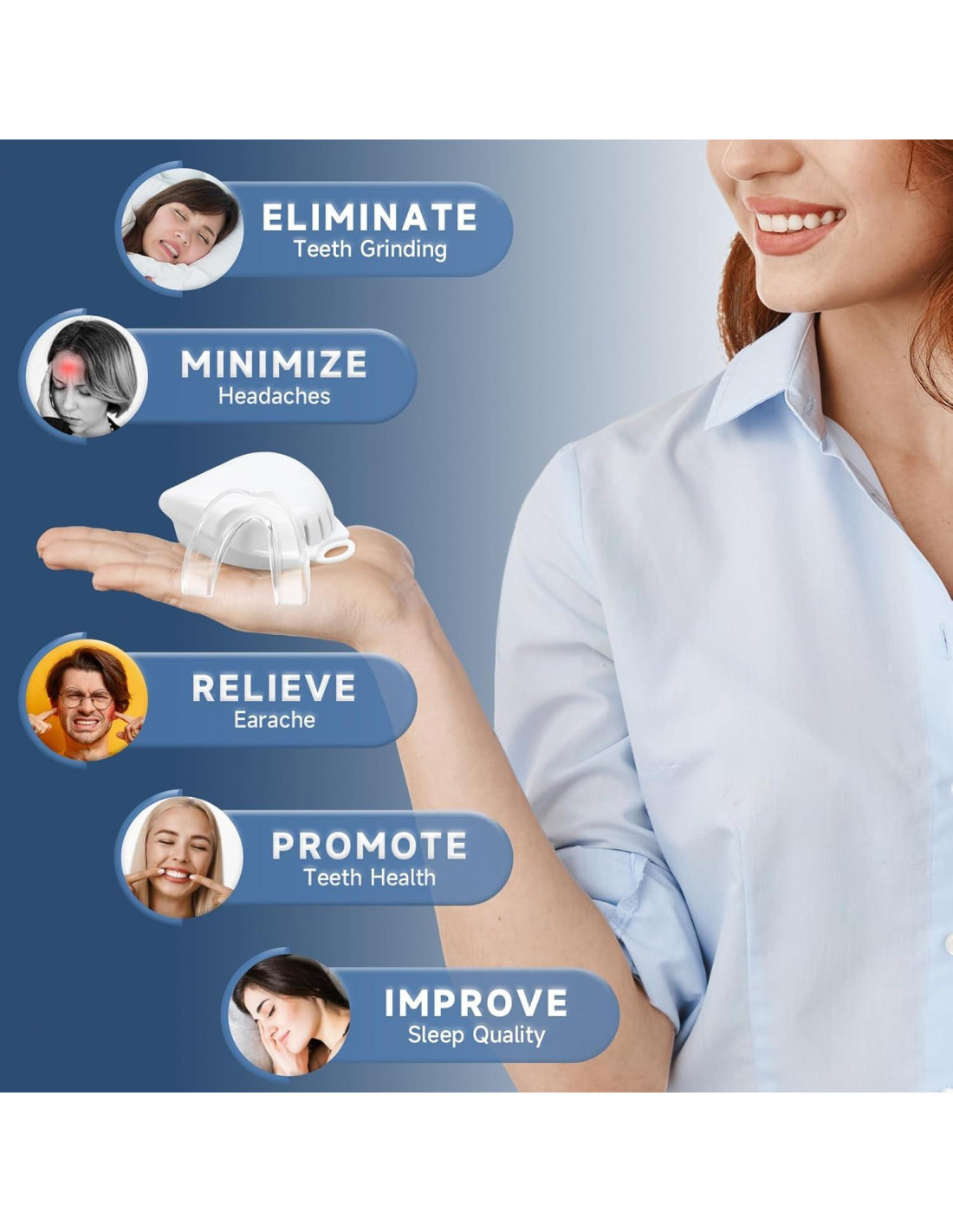 - [Multi-Funcional] Nuestro protector bucal profesional protege los dientes de daños causados por el rechinamiento o apretamiento mientras duermes. Además, puede aliviar el dolor de mandíbula, TMJ, desgaste dental y otros síntomas relacionados con el bruxismo. Con nuestros protectores bucales personalizados, puedes experimentar protección y comodidad todo en uno.