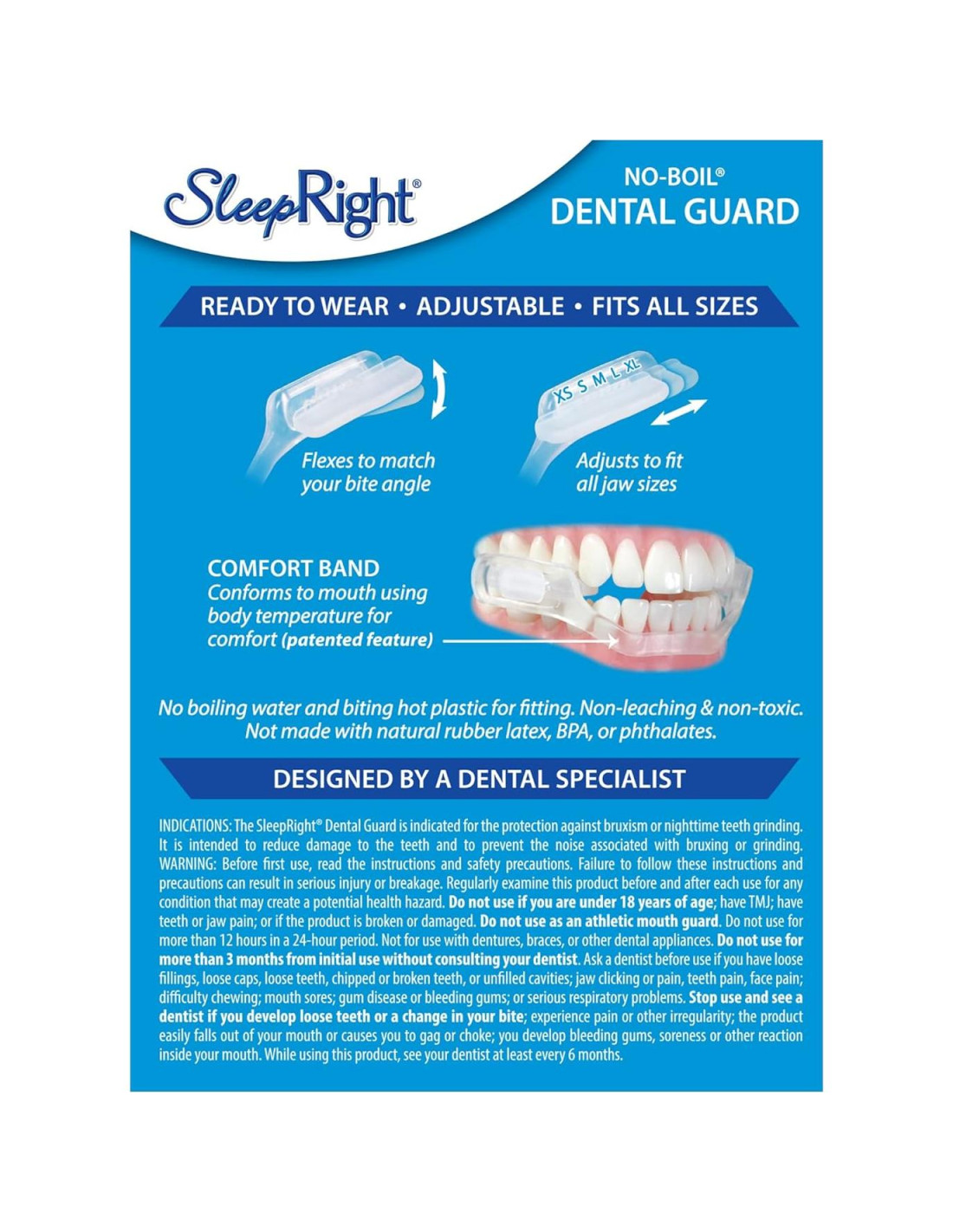 - SEGURO DE USAR. Los Protectores Dentales SleepRight tienen el mejor historial de seguridad de la FDA en su clase - sin eventos adversos de la FDA en 21 años. Son no lixiviables y no tóxicos - sin BPA, látex, silicona o ftalatos.