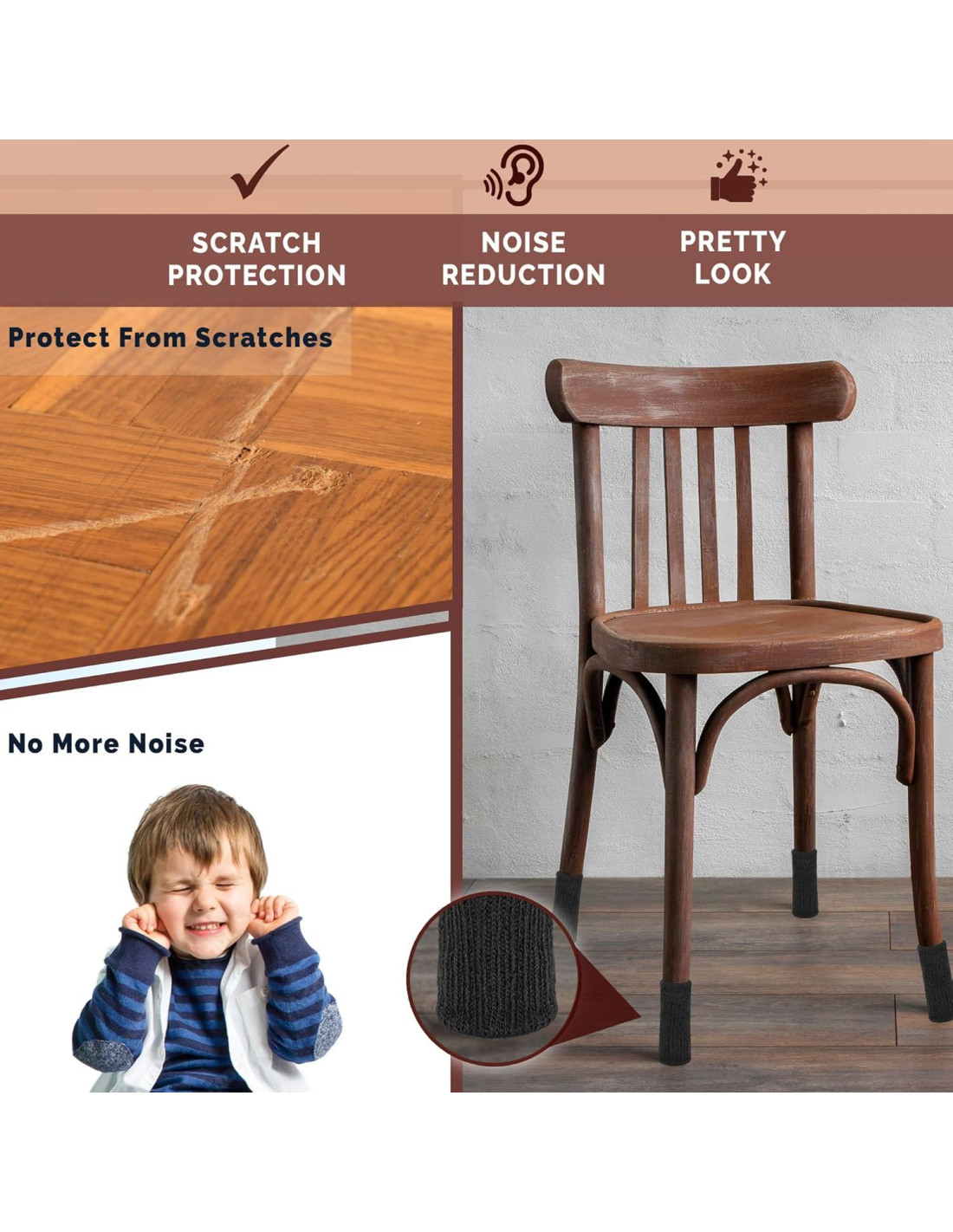 - MULTIUSO- No solo estos cubre calcetines actúan como una barrera protectora para las patas de las sillas, también se pueden usar para taburetes, escritorios, mesas y más. Estos calcetines ajustados se pueden estirar fácilmente para adaptarse a la mayoría de las formas de patas de muebles, incluyendo barras redondas, ovaladas y cuadradas. Protege pisos de madera, laminado o cerámica.