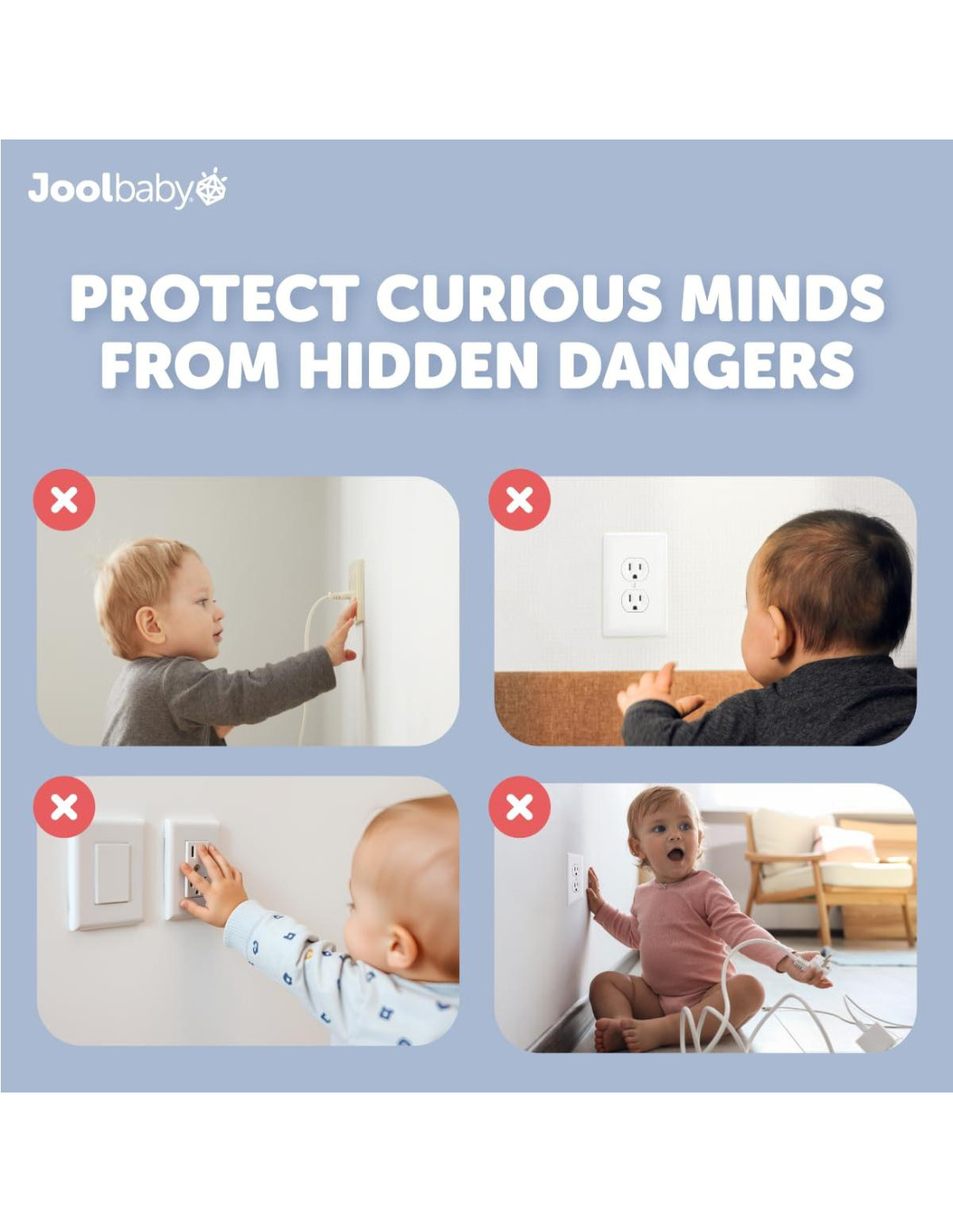 Protege tu hogar utilizando las cubiertas de enchufe Jool Baby para ayudar a prevenir que los niños accedan a los enchufes eléctricos. Nuestros protectores de enchufe son fáciles de instalar, pero difíciles de quitar para los niños pequeños. El diseño transparente se integra perfectamente en el entorno de tu hogar. Perfecto para usar en cualquier lugar donde necesites ayudar a mantener a los niños seguros, incluyendo hogares, escuelas y guarderías.