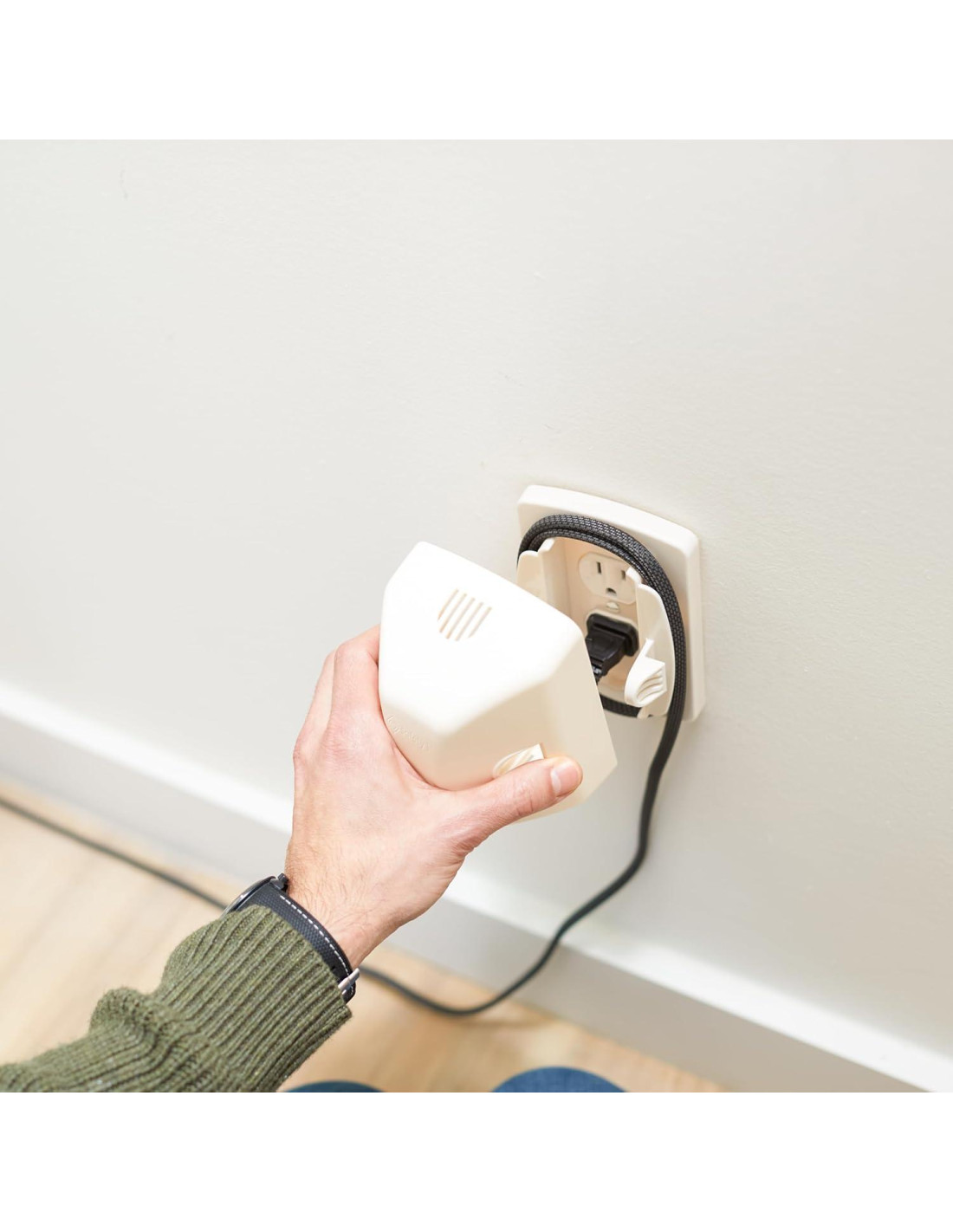 - Cobertura completa del enchufe - Cubre todo el enchufe y mantiene los cables de los electrodomésticos fuera del suelo, almacenando hasta cuatro pies (1.22 metros) de cables.