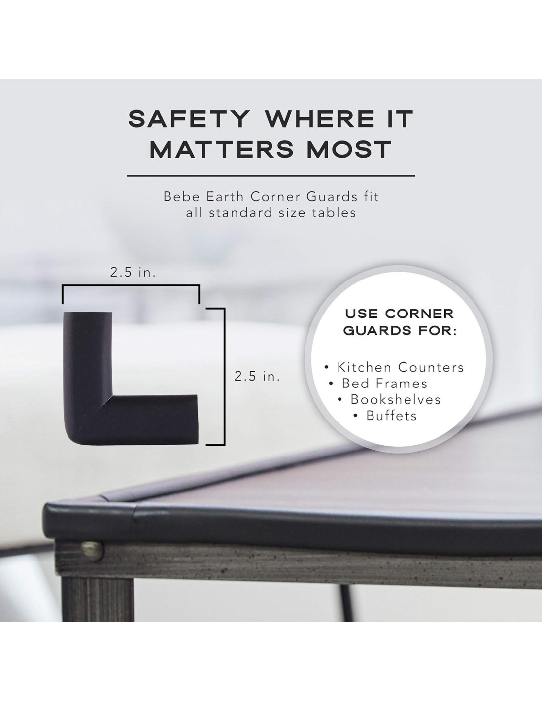 - A PRUEBA DE NIÑOS EN CUALQUIER HABITACIÓN: El juego de protectores de bordes y esquinas de Bebe Earth incluye 16 cubiertas de esquina por el precio de 8! Asegura 4 mesas con estos protectores de esquina para proteger a bebés y ancianos de bordes afilados. Los protectores de esquina para la seguridad de bebés de Bebe Earth también incluyen un tope de puerta para ayudar a prevenir que se cierren o pellizquen los dedos de los niños.