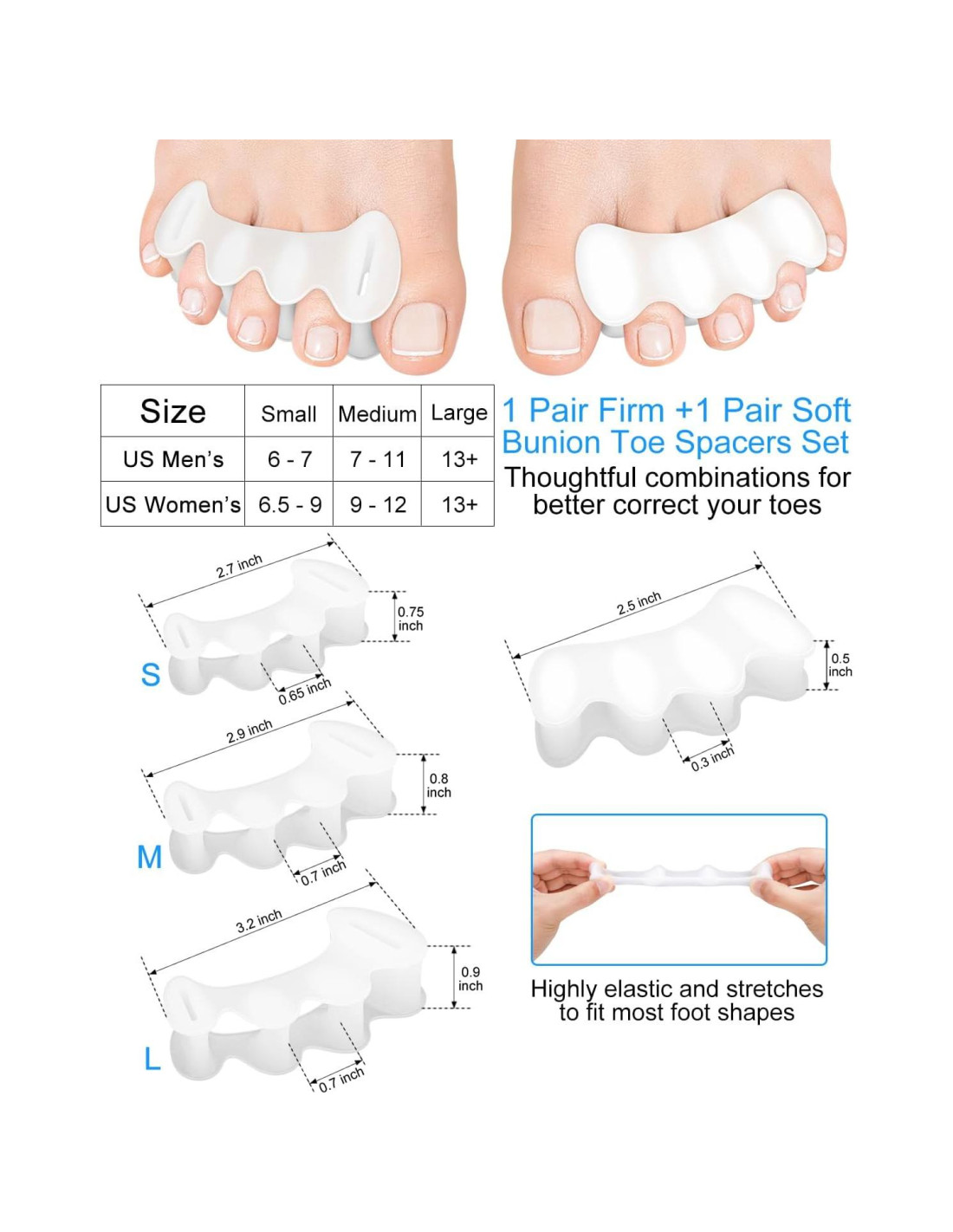 - Fácil y Cómodo de Usar: 1 Par de Separadores de Dedos hechos de materiales médicos firmes, no de silicona más suave como gel. Y 1 Par hecho de gel más suave, todos con buena estabilidad y compresión sin deformación. Lo suficientemente flexibles para ponerlos fácilmente, pero lo suficientemente firmes para proporcionar el soporte y ajuste deseados. Fácil de limpiar con jabón y agua.