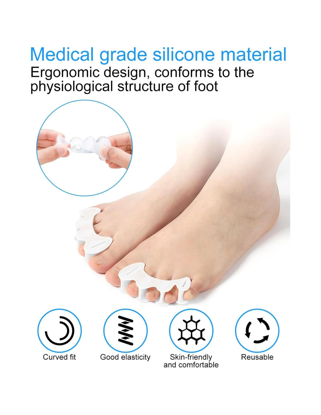 - Diseñado para Alivio del Dolor en los Pies: Nuestros separadores de dedos correctores también añadirán estabilidad y destreza a tu postura general y fortalecerán los músculos del pie, mientras aumentan el soporte del arco y corrigen suavemente tus dedos a su forma original. Obtén alivio para los pies a través de formas seguras y naturales.