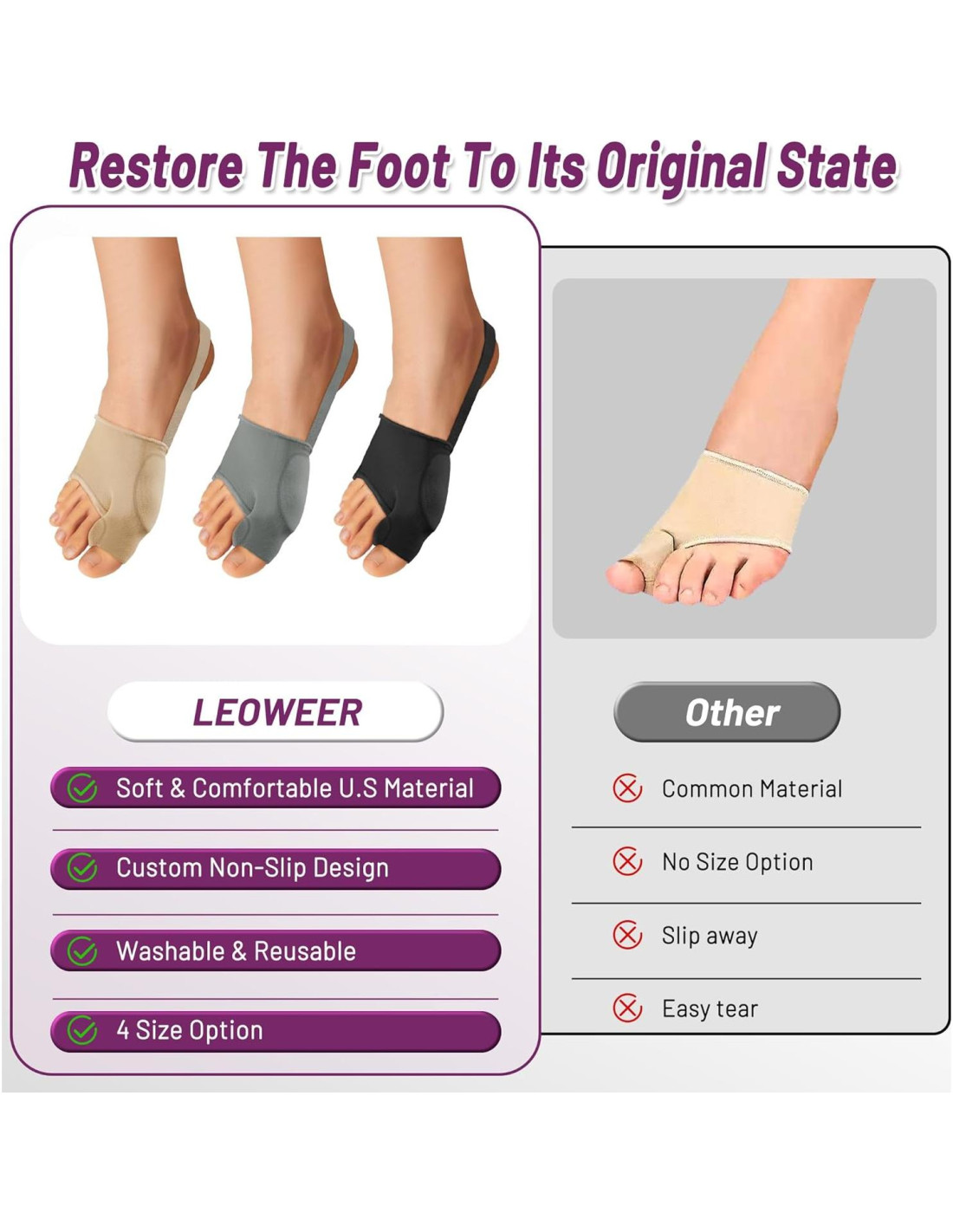 - Ajuste Personalizado para Comodidad Todo el Día - Actualizado con 4 tamaños extendidos (S-XL) para adaptarse mejor a diferentes formas de pies. La manga elástica se adapta a los contornos de tu pie, proporcionando soporte personalizado ya sea que uses zapatos planos o zapatillas. Asegurando que el 98.7% de los usuarios logren una cobertura óptima desde el dedo hasta el talón.