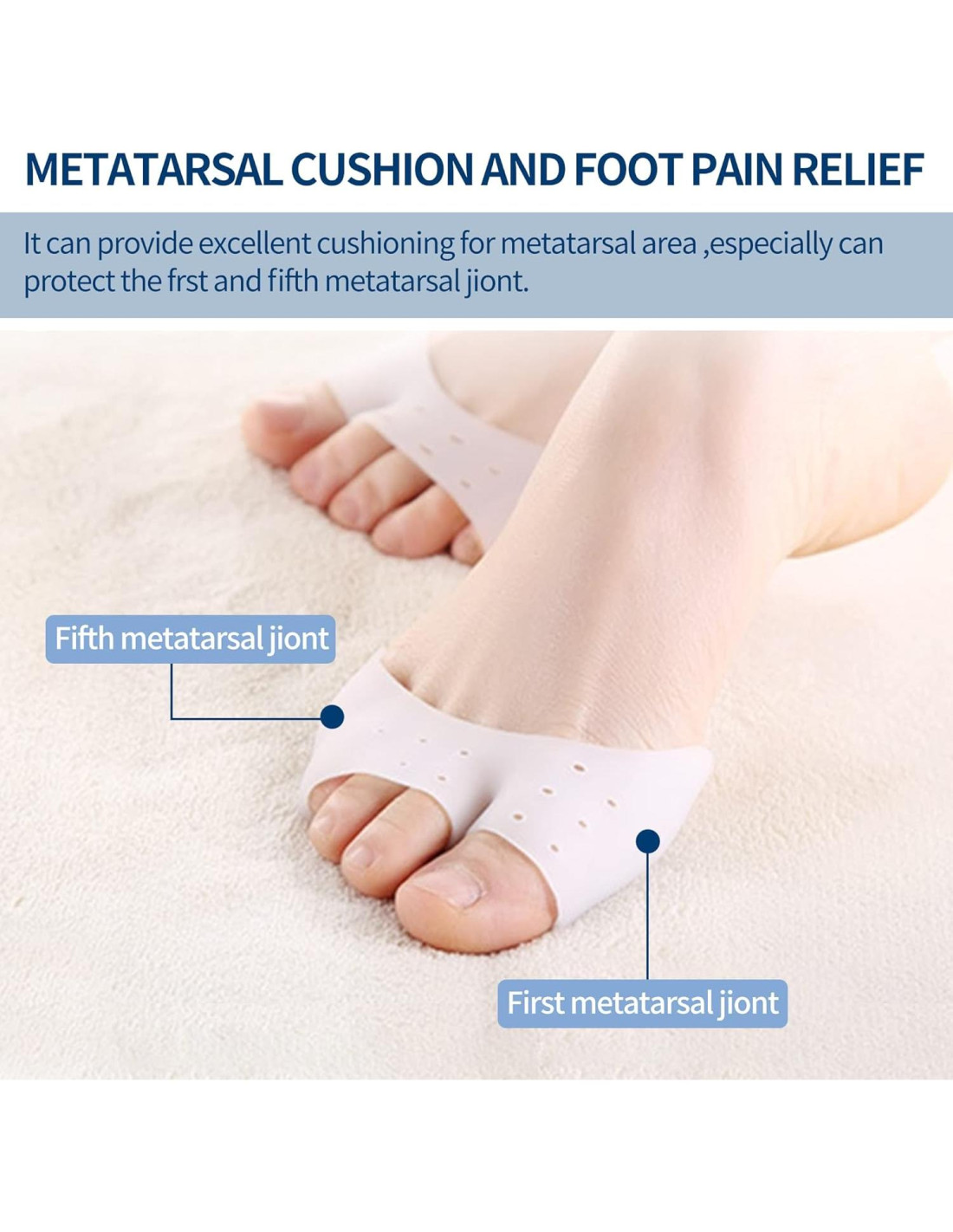 - Aliviar el Dolor de Pie: Estas suaves fundas de gel proporcionan cobertura envolvente completa. El cojín para los dedos crea un ambiente de curación adecuado y ofrece protección contra condiciones dolorosas del pie como dedos superpuestos, juanetes, callos, ampollas, metatarsalgia, juanete de sastre y más.