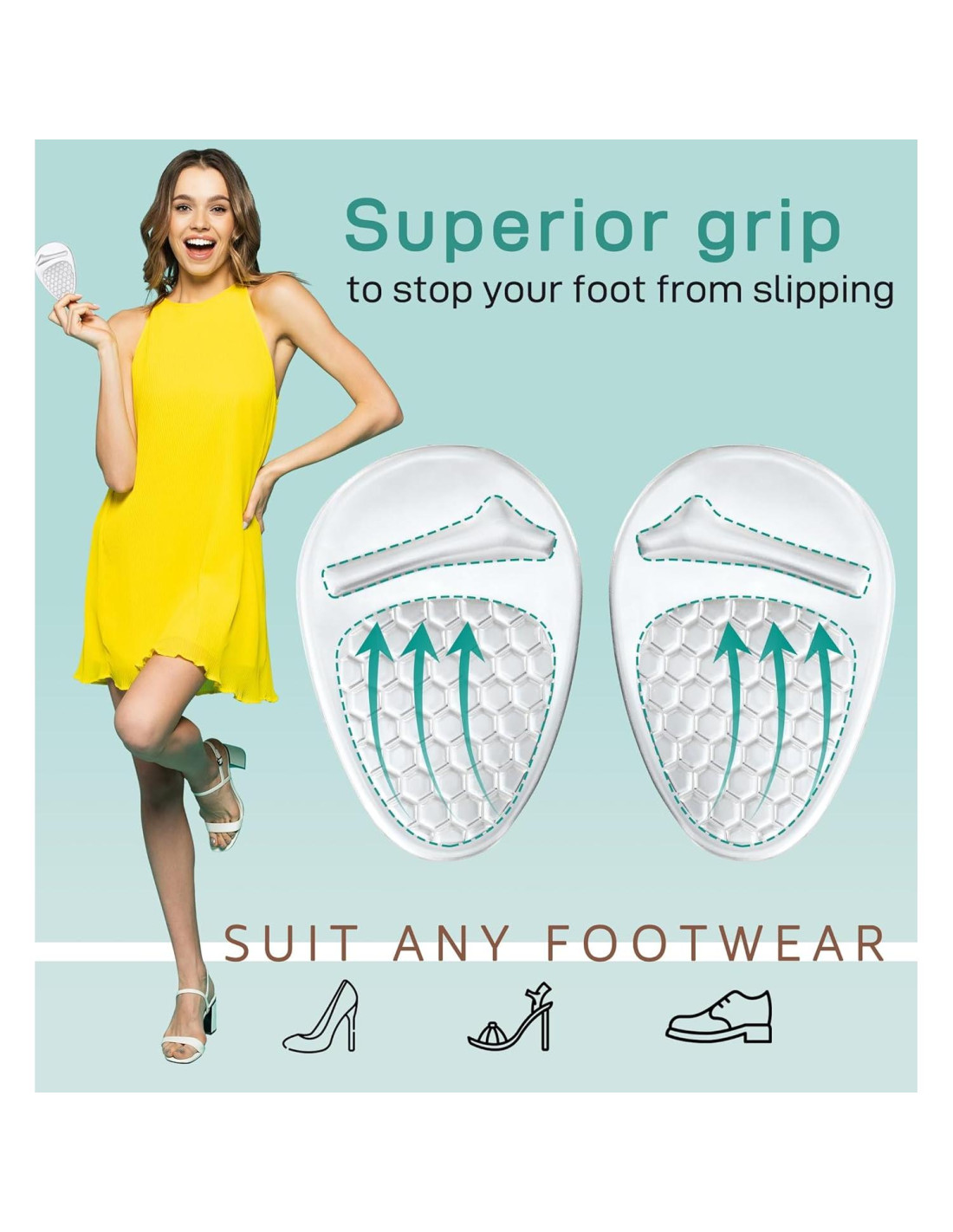 - Agarre Antideslizante para Pasos Seguros: Camina con confianza sabiendo que tus pies no se deslizarán. La fuerte base adhesiva asegura que las almohadillas se mantengan en su lugar, mientras que la textura antideslizante mantiene tus pies estables dentro de tus zapatos. Ya sea que estés bailando toda la noche o asistiendo a un evento formal, estas almohadillas proporcionan el agarre y soporte que necesitas.