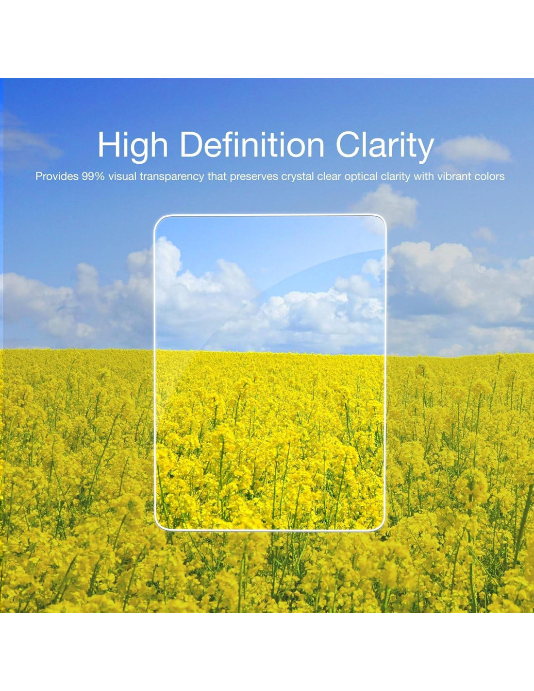 - [CRISTALINO] Este protector de pantalla galardonado permite un 99% de VISIBILIDAD con material super claro, ¡así que ni siquiera notarás que está ahí! Permite que todos tus colores vibrantes brillen sin distorsionar tu vista de ninguna manera.