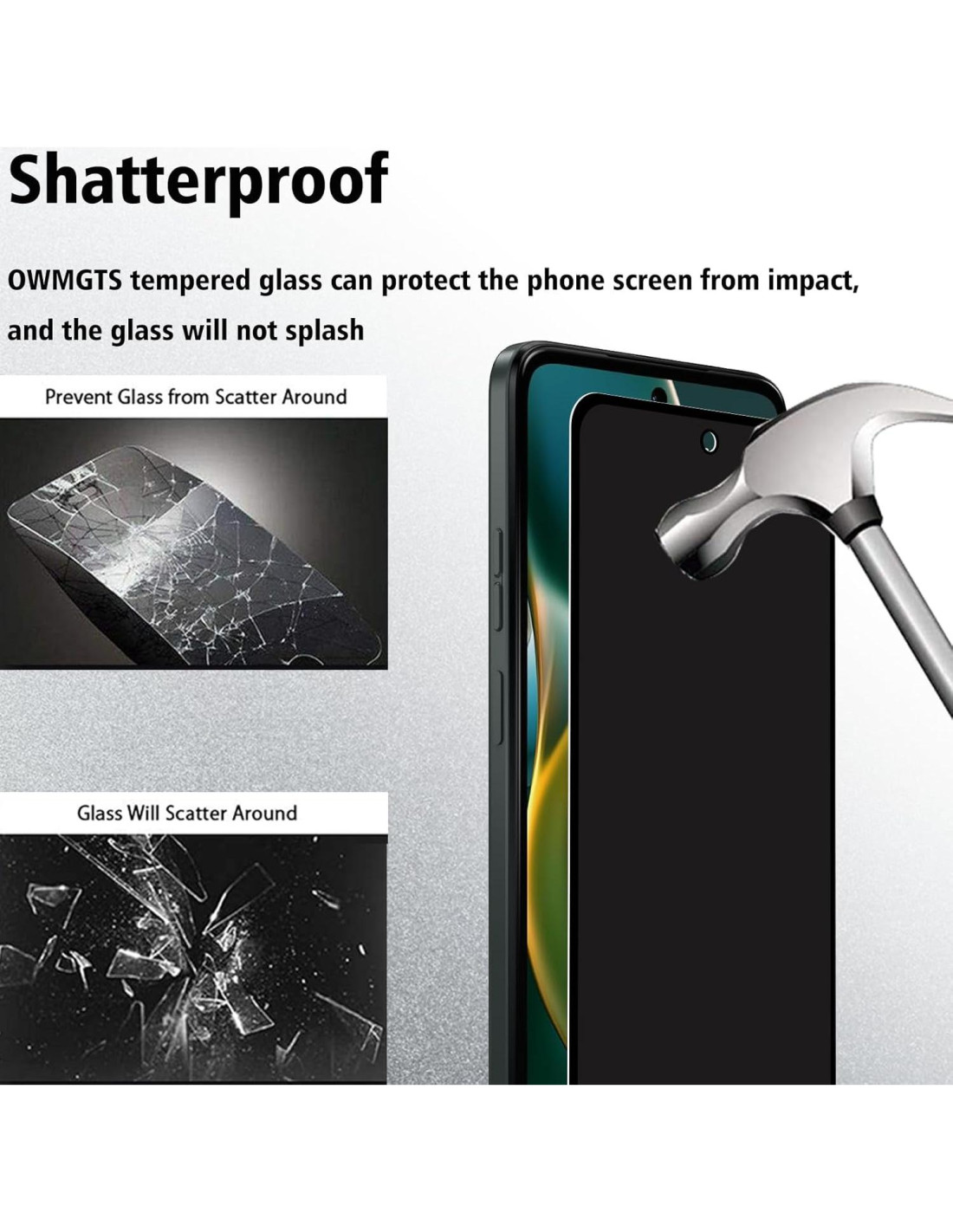 Descripción del Producto: OWMGTS Vidrio Templado de Dureza 9H para Motorola Moto G Power 2025 P: ¿Por qué elegir el Protector de Pantalla OWMGTS? --solo se puede ver el contenido de la pantalla directamente frente al teléfono, protegiendo la privacidad personal de manera más efectiva. --Autoadhesivo, sin burbujas, se puede instalar fácilmente sin burbujas y quitar sin residuos. --Alta respuesta con 99.9% de precisión. --Protege la pantalla de rasguños y roturas, buena resistencia al impacto. --Recubrimiento resistente a huellas dactilares, sin huellas, mantiene la pantalla limpia. --Alta definición manteniendo los efectos visuales originales, te proporciona una alta sensibilidad táctil para usar tu teléfono sin problemas. Si tienes alguna pregunta, contáctanos, responderemos dentro de 24 horas y resolveremos tus problemas. El paquete incluye: 2 x Protector de Pantalla Privado 2 x Protector de Lente de Cámara 2 x Kit de Limpieza