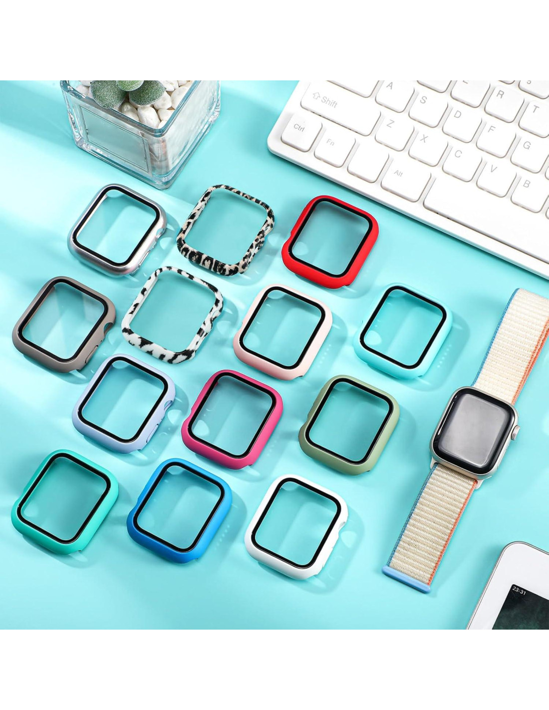 - Paquete Compartido: el paquete contiene 24 piezas de protectores de pantalla para reloj en 24 colores diferentes, incluyendo azul, negro, blanco, verde, morado claro, rosa, transparente y más, disponible en cantidad suficiente y colores variados para satisfacer tus necesidades de uso diario, reemplazo y compartición