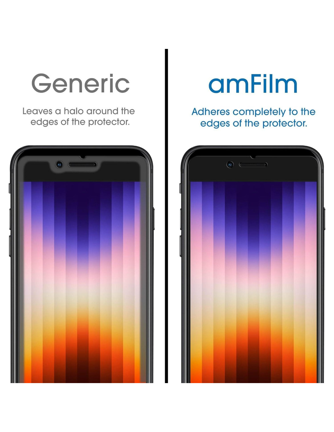 - Diseñado especialmente para iPhone SE 2 (2020 2) / SE 3 (2022 3) Generación, iPhone 8, 7, 6S, 6, Protector de Pantalla de Vidrio Sin Halo (Tenga en cuenta: esto no es compatible con la versión iPhone SE (2016)).