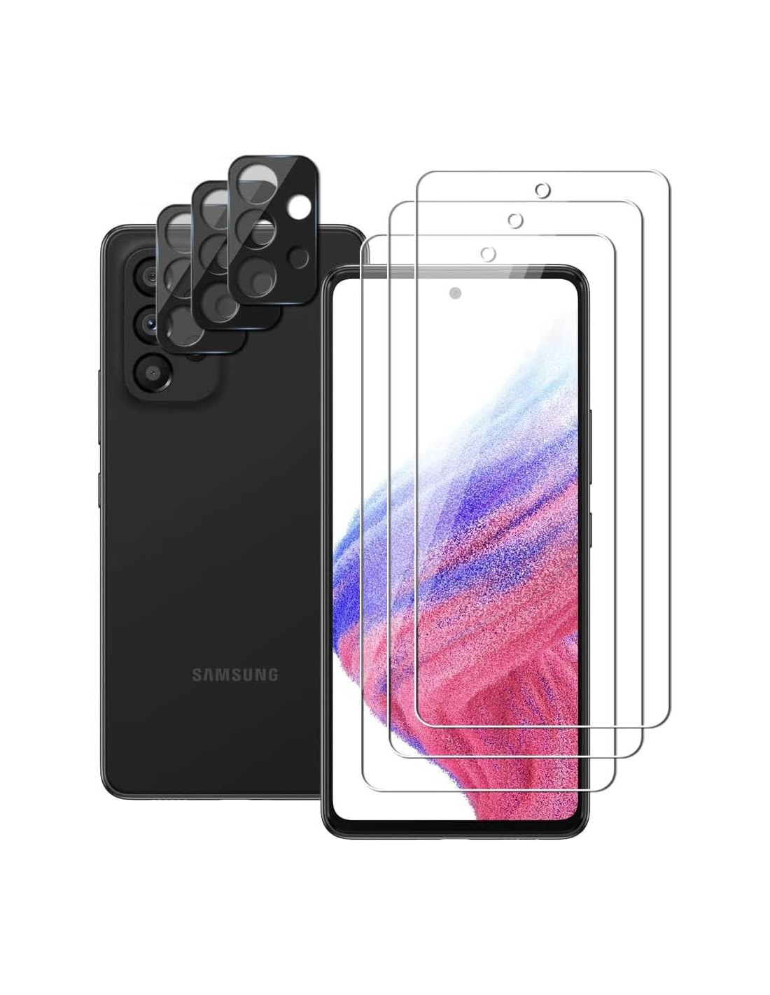 3 Paquete Protector de Pantalla de Vidrio Templado y 3 Paquete Protectores de Lente de Cámara Para Samsung Galaxy A53 5G