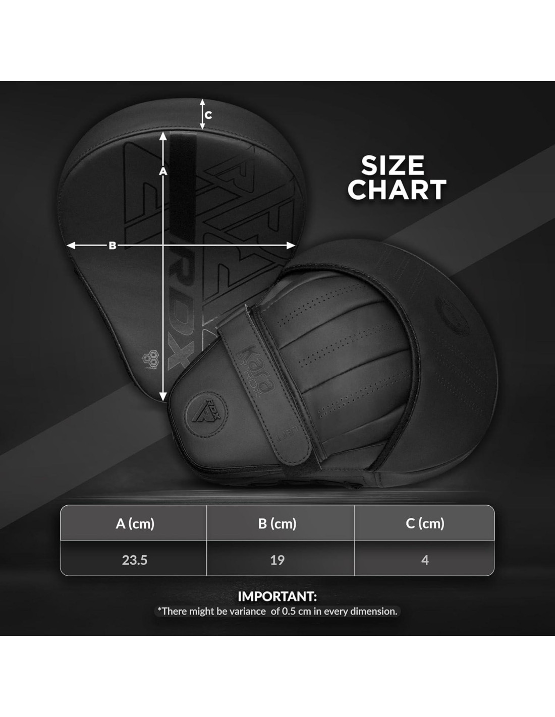 - EL MATERIAL HACE LA DIFERENCIA Con una capa de cuero Maya Hide de alta calidad sobre los acolchados, RDX asegura que sus mitts de enfoque sean altamente duraderas y duren mucho tiempo. El cuero Maya Hide, junto con la hoja EVA-Lution y la espuma Polygonal Fusion que difunde el impacto, ayuda a crear un par de almohadillas de artes marciales que brindan a sus usuarios una experiencia como ninguna otra.