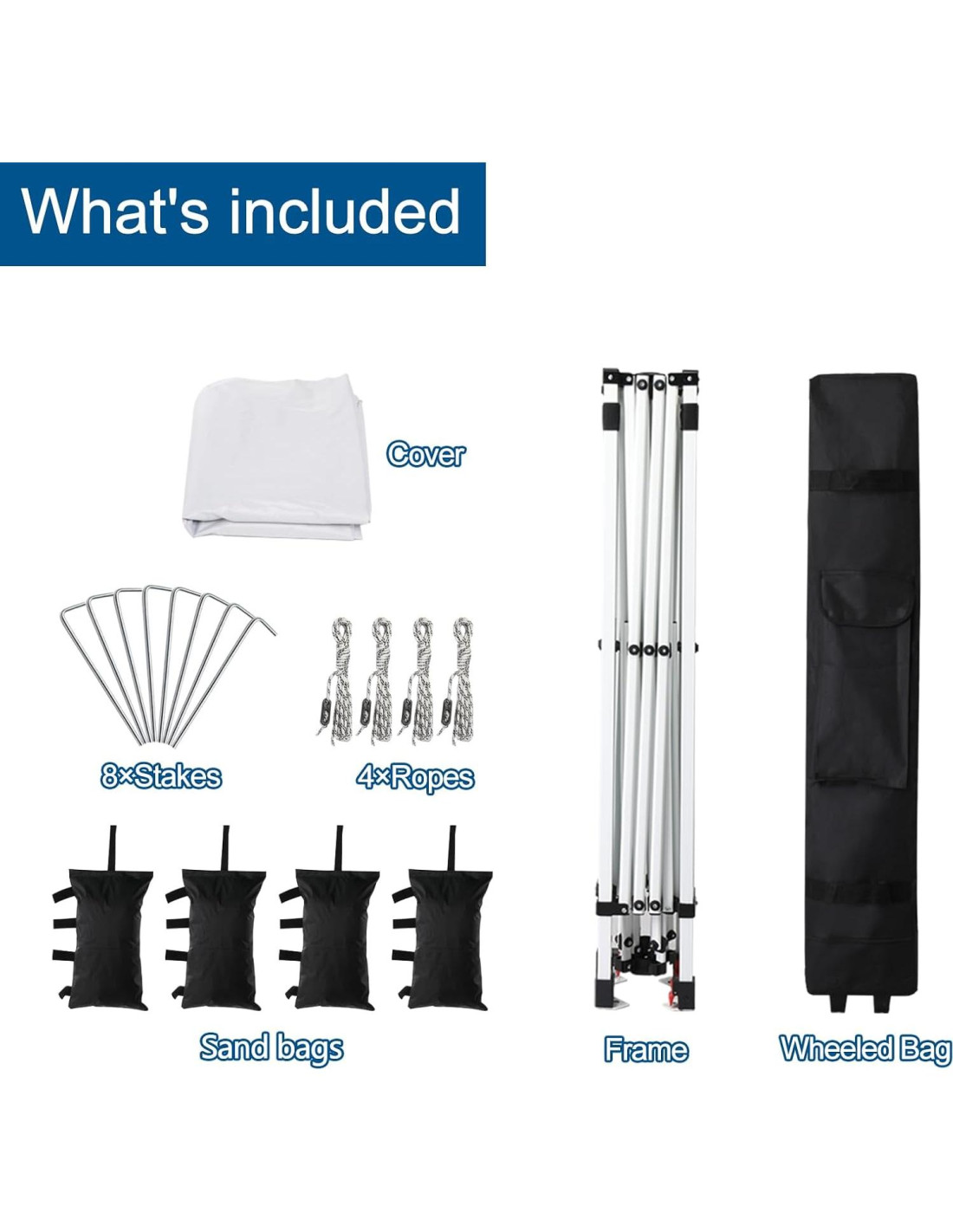 - Amplia Área de Sombra: La carpa para fiestas es ideal para eventos familiares al aire libre, puestos de mercado y eventos deportivos infantiles. La carpa blanca 10x10 tiene un diseño espacioso que puede acomodar cómodamente de 6 a 8 personas