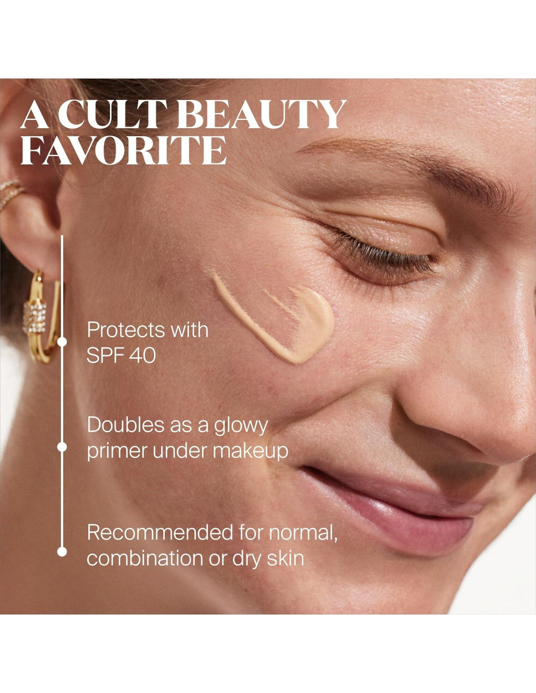 - GLOWSCREEN - Supergoop! Glowscreen es un protector solar de amplio espectro con SPF 40 que ayuda a filtrar la luz azul y también funciona como un primer que fija el maquillaje para una piel radiante y luminosa que no es grasosa ni aceitosa.