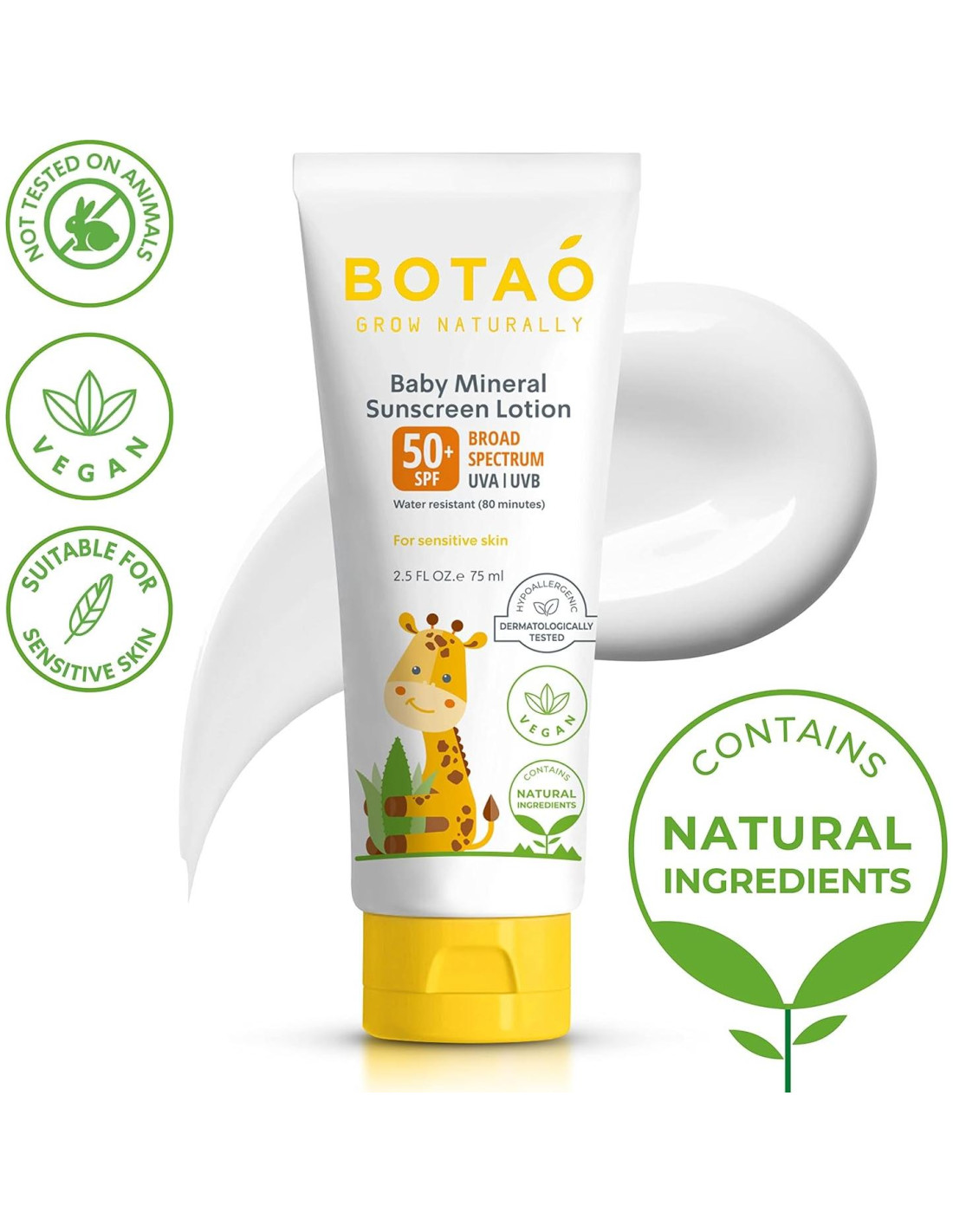 - PROTEGE LA PIEL DEL BEBÉ: El spray espumoso de protector solar mineral BOTAO para bebés de K and Care Organics es un protector solar de amplio espectro SPF50 para la cara, cuello y cuerpo de bebés o niños pequeños con protección solar intensiva que cubre hasta 80 minutos por aplicación; llega en una botella de spray de 100 ml, lista para usar o regalar
