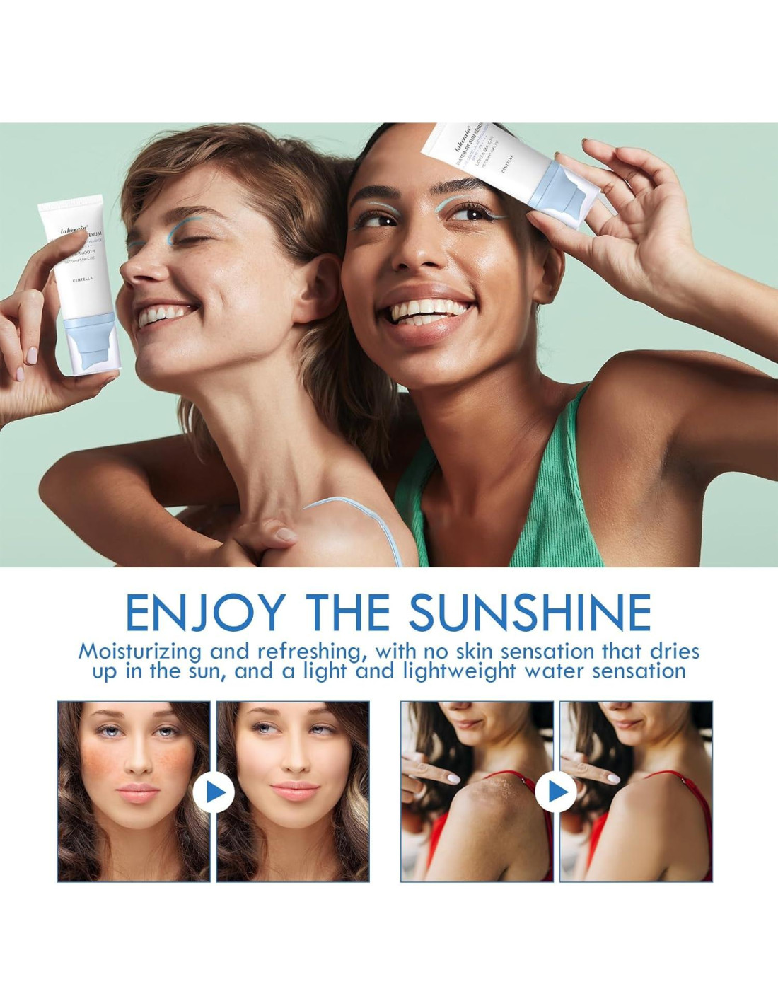 - Suero Solar Hidratante: Este protector solar SPF 50 para la cara es rico en esencia hidratante de Centella Asiatica pura para nutrir y suavizar la piel, proteger la piel en actividades al aire libre y mantener la nutrición al mismo tiempo.