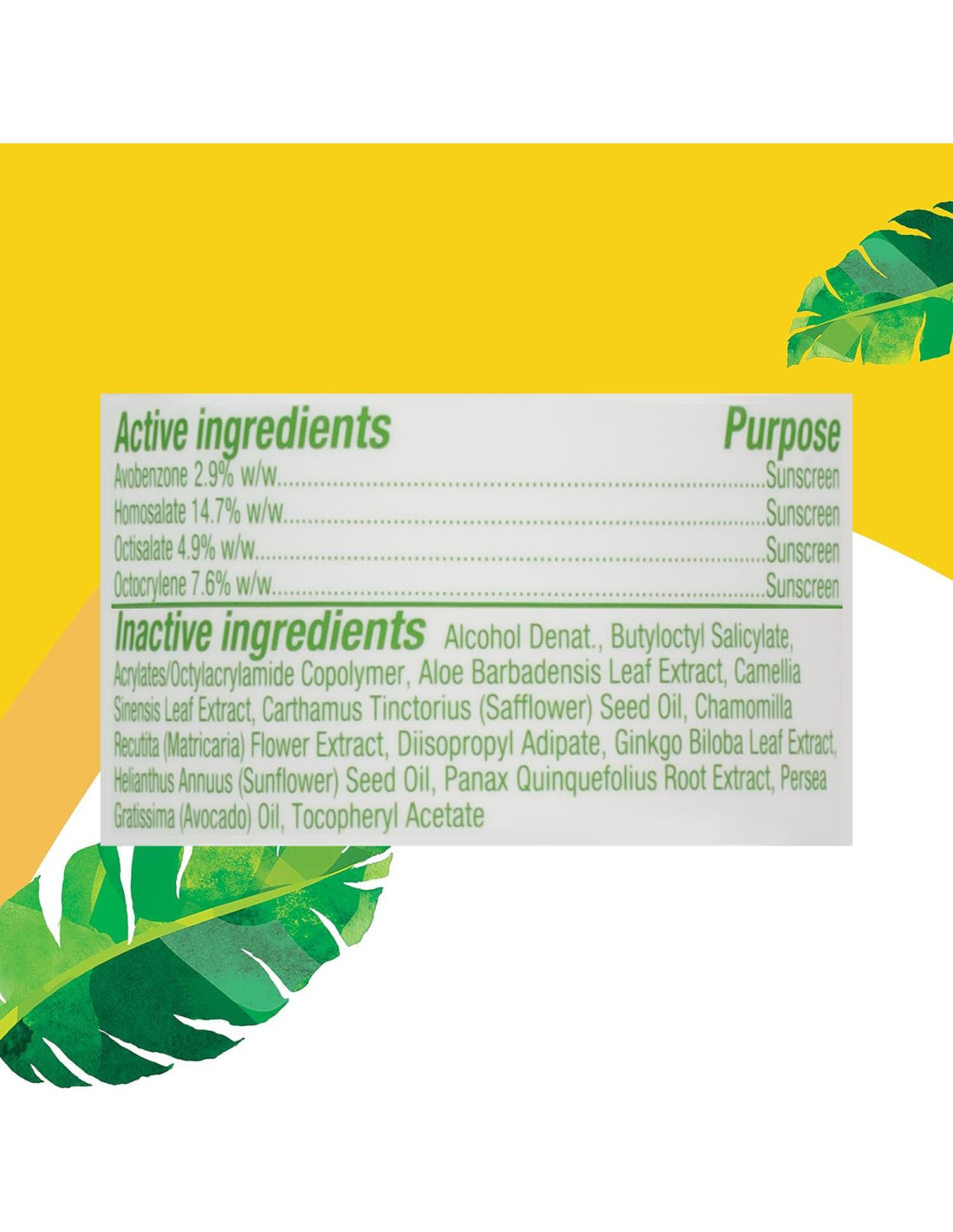 - PROTECTOR SOLAR SIN FRAGANCIA: Un spray solar ligero y de secado rápido que presenta ingredientes como aloe vera, manzanilla y aceite de aguacate