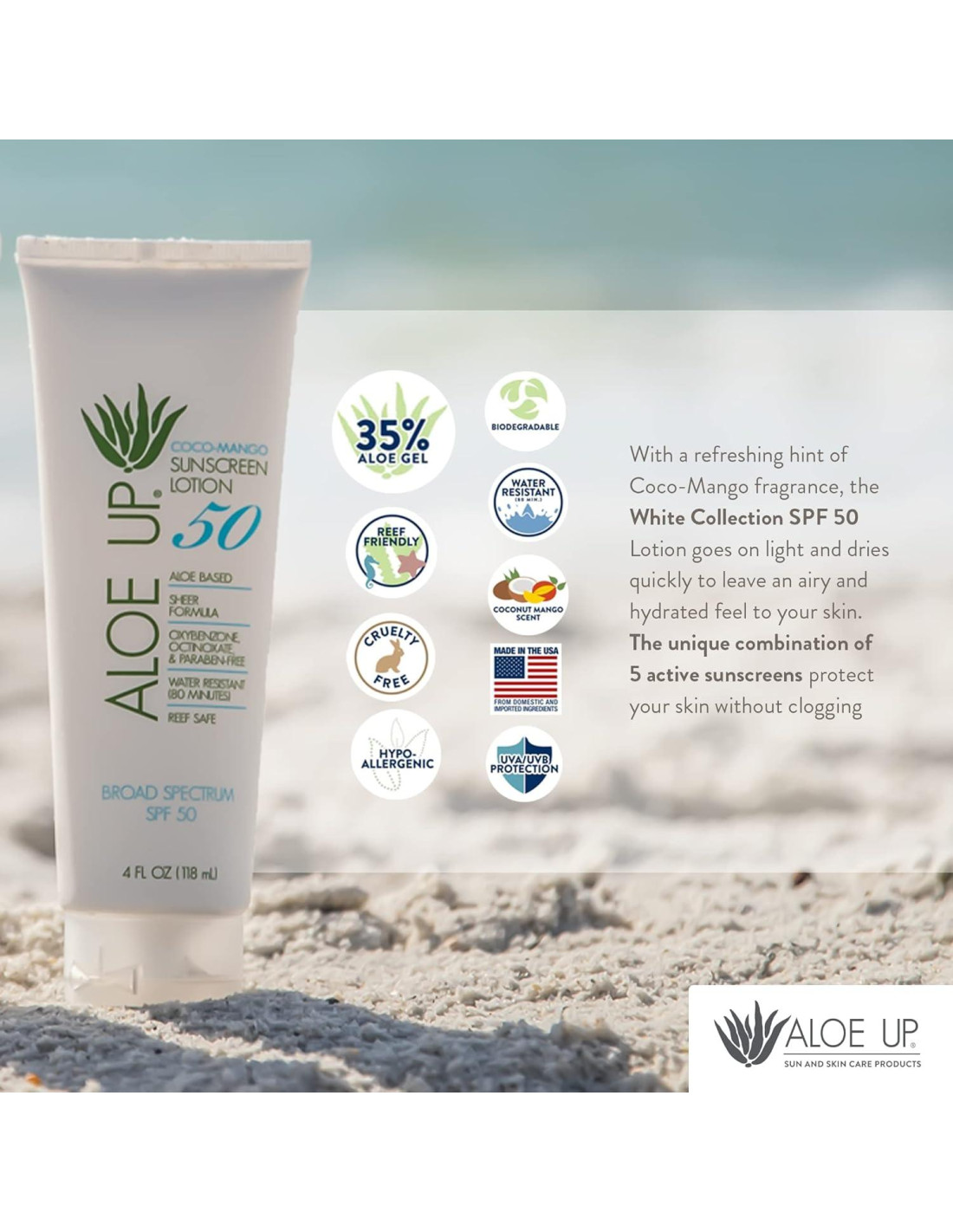 - EL PROTECTOR SOLAR DIARIO PERFECTO: Tu rutina de cuidado de la piel acaba de recibir una mejora. Con un toque de fragancia refrescante de coco-mango, nuestra loción bloqueadora solar a base de aloe de la Colección Blanca se aplica ligera y transparente, dejando tu piel hidratada con protección completa UVA/UVB.