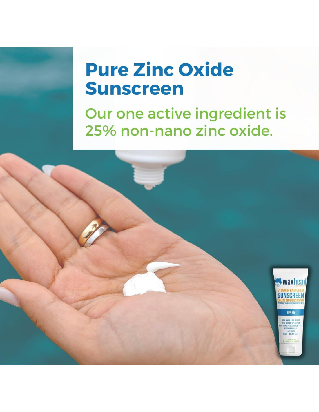Nuestros protectores solares, productos para el cuidado de la piel, ropa + equipo inusualmente seguros para el medio ambiente y efectivos son confiables para surfistas inteligentes, guías de pesca, corredores y personas saludables en todas partes. No solo evitamos filtros químicos, los reemplazamos con algo mejor. Waxhead utiliza solo óxido de zinc no nano (25%) como su ingrediente activo, formando una barrera física que refleja los rayos UVA/UVB en lugar de absorberlos. Sin oxibenzona, sin octinoxato, sin disruptores endocrinos, solo defensa solar limpia y efectiva. Es un protector solar en el que puedes confiar en tu cara, tus hijos e incluso en tatuajes en proceso de curación. Nuestra fórmula nació de la búsqueda de un padre por un protector solar seguro que no ardiera, obstruyera poros o desencadenara eczema. Waxhead es de grado alimenticio, sin fragancias, hipoalergénico y recomendado por dermatólogos, diseñado para proteger incluso la piel más delicada o reactiva. Padres, atletas, dermatólogos y artistas del tatuaje coinciden en que el protector solar más suave aún funciona como un campeón. No deberías tener que elegir entre proteger tu piel y proteger el planeta. Waxhead es verdaderamente seguro para los arrecifes, hecho sin filtros UV químicos como oxibenzona u octinoxato, y libre de microplásticos o nanopartículas. Es lo suficientemente suave para aguas naturales y lo suficientemente resistente para todo el día al sol. Ya sea que estés buceando en los Keys o remando en un lago de montaña, Waxhead te mantiene a ti y a la vida marina a salvo. A diferencia de los protectores solares químicos que desaparecen instantáneamente (y dejan de funcionar cuando no puedes verlos), Waxhead deja una capa visible de óxido de zinc, por lo que siempre sabes qué áreas están protegidas. Se absorbe para un acabado casi transparente y mate, pero esa suave capa blanca? No es un defecto. Esa es tu prueba de que está funcionando. Así es como los salvavidas, surfistas y dermatólogos se mantienen protegidos todo el día.