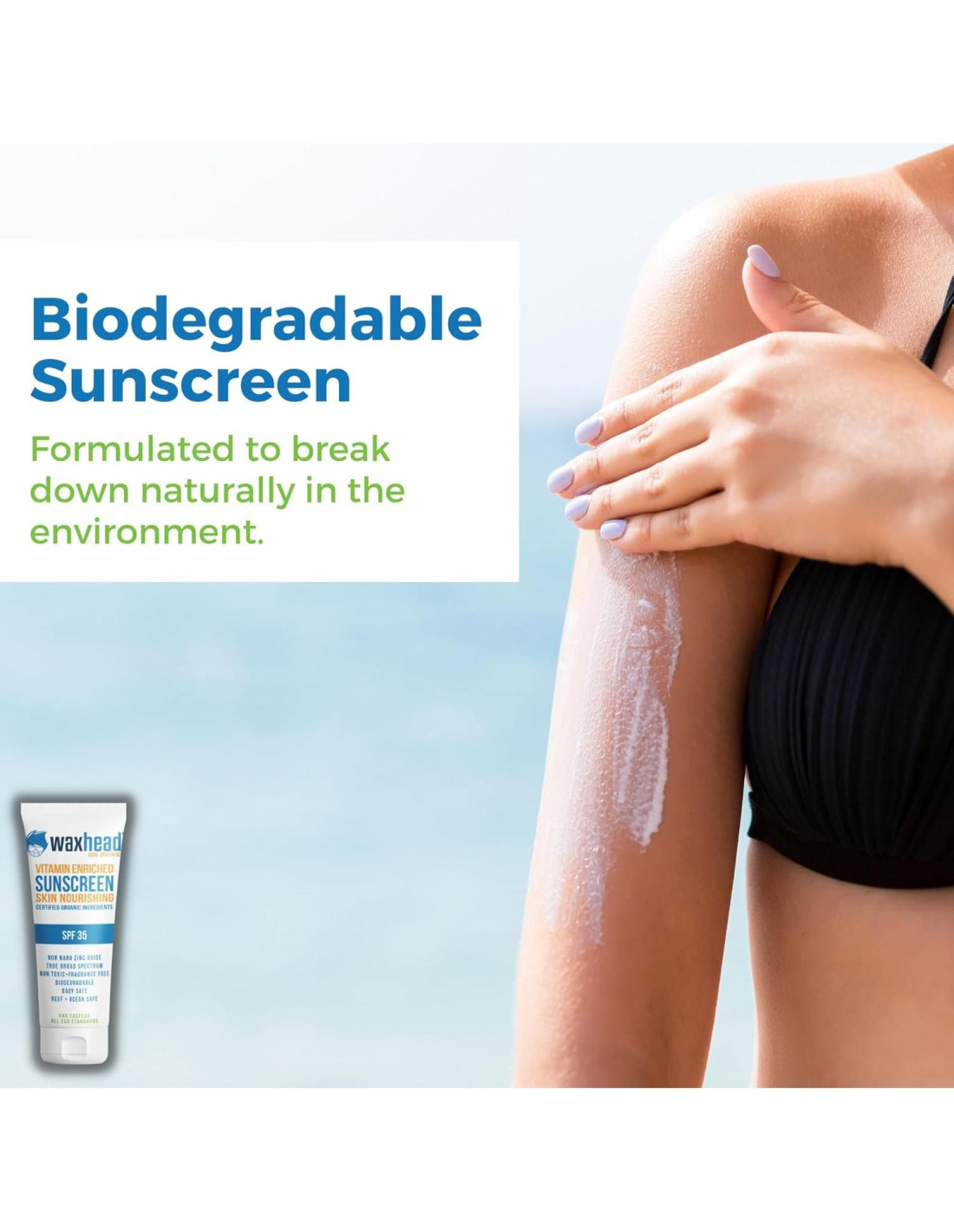 - Protector Solar Biodegradable, Seguro para Arrecifes y Resistente al Agua - Nada, suda y salpica, este protector solar se mantiene en su lugar. Es biodegradable, no tóxico y completamente libre de ingredientes dañinos para los arrecifes como oxibenzona u octinoxato. Genial para océanos, lagos y manantiales.