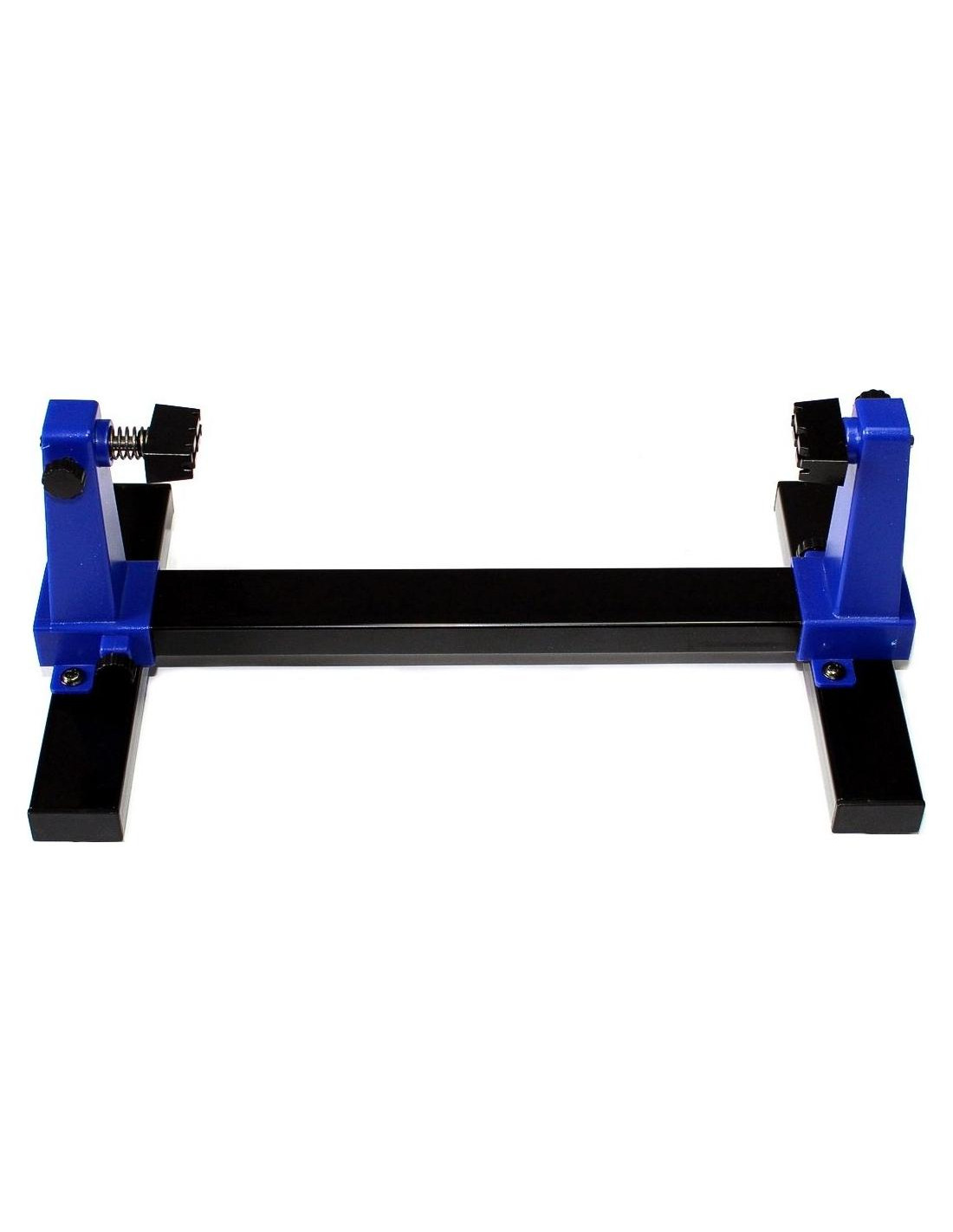 Marco de PCB Este marco sostendrá PCBs estándar entre 2 pinzas para una fácil ensamblaje y soldadura. La configuración de rotisserie permite girar la placa sin quitarla de la pinza de resorte, pero también se puede bloquear usando el botón de ajuste. Simplemente inserte el PCB y gírelo para tener el lado de los componentes hacia arriba, inserte uno o más componentes y luego solo gire la placa en la rotisserie, suelde los componentes y gírelo nuevamente para colocar componentes adicionales. No es necesario quitar la placa entre cada ronda porque las pinzas permiten una fácil rotación (que se puede bloquear). La unidad acomodará placas de diferentes anchos moviendo uno o ambos de los soportes a lo largo de la barra, hasta un ancho de 22.86 centímetros.