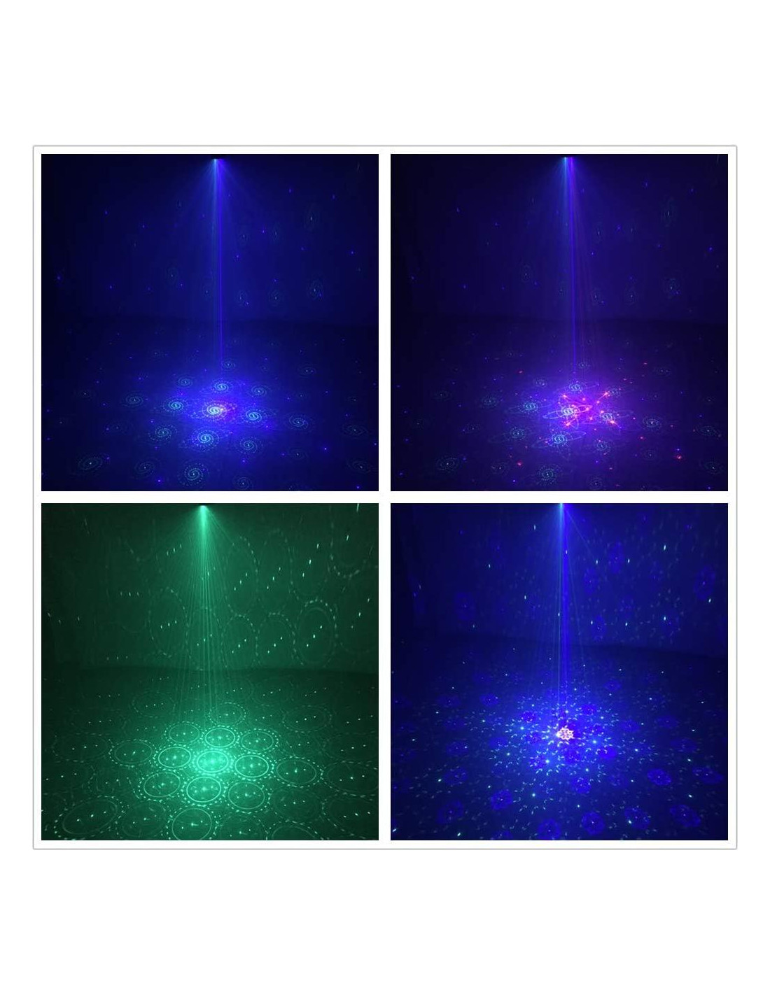 - [Efecto de Luz Maravilloso] : Estas luces mini DJ tienen 3 colores, rojo, verde y azul, combinados con diferentes gobos. Los maravillosos efectos de iluminación pueden ser activados por la música con el ritmo musical. Tiene 3 modos que se cambian con un botón.
