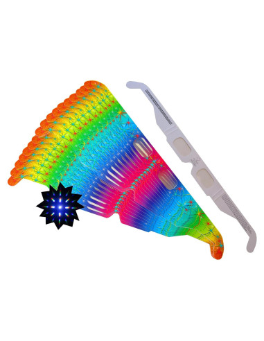 Las gafas de fuegos artificiales son la manera perfecta de ver espectáculos de fuegos artificiales, luces navideñas, ¡incluso la luna y las estrellas! Aquí se incluyen 50 gafas de difracción de fuegos artificiales en marcos de Espectro Arcoíris más un par adicional de nuestras exclusivas Gafas de Corazones Arcoíris. Los marcos son de cartón ligero. ¡Ve hermosos estallidos de estrellas arcoíris de fuentes de luz en entornos oscuros! ¡51 gafas en total!