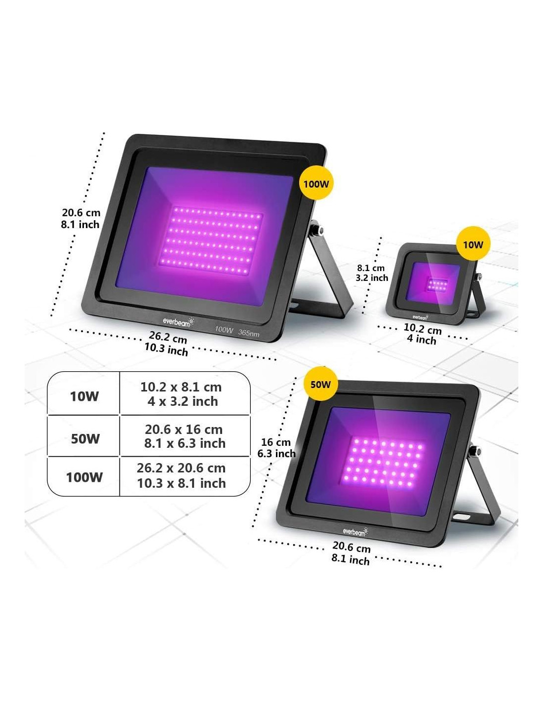 - COBERTURA ANCHA IMPRESIONANTE - Nuestra luz de fiesta UV de 50W alberga bombillas LED UV-A con una longitud de onda de 365nm. Emite luz ultravioleta en un ángulo de 120 grados, proporcionando una iluminación adecuada para tus fiestas.